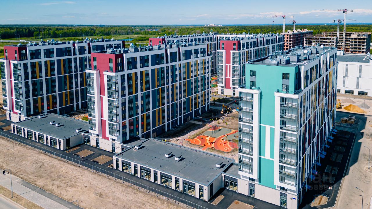 При этом рядом с кварталом есть выезд на КАД, к которому все дома развёрнуты таким образом, чтобы шум с него не мешал жителям.