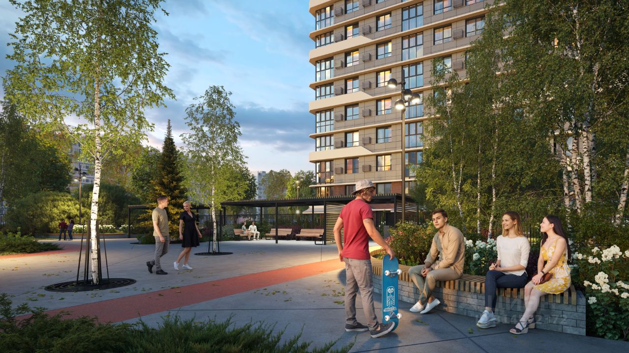 Благоустройство и безопасность территории Закрытый двор: территория комплекса огорожена и находится под круглосуточным видеонаблюдением, доступ ограничен. Двор-парк: многоуровневое озеленение, прогулочные аллеи, детские игровые площадки для разных возрастов. Приватность: в доме всего 101 квартира, что обеспечивает камерную и спокойную атмосферу.