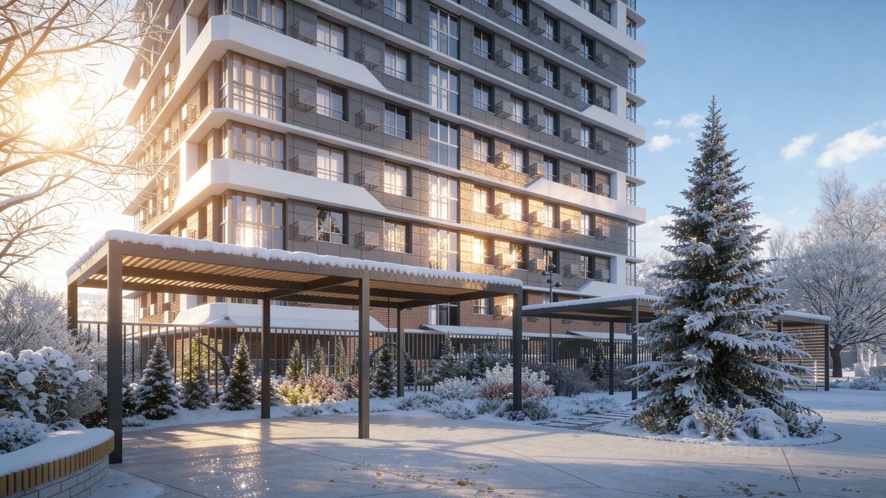 Архитектура и дизайн общественных зон Архитектурная концепция выполнена в стилистике постсоветского модернизма, что делает фасад узнаваемым. Общественные зоны продуманы до мелочей: Дизайнерские лобби: с зонами ожидания, выполненными в натуральных оттенках. Доступная среда: бесступенчатые входные группы и широкие коридоры.