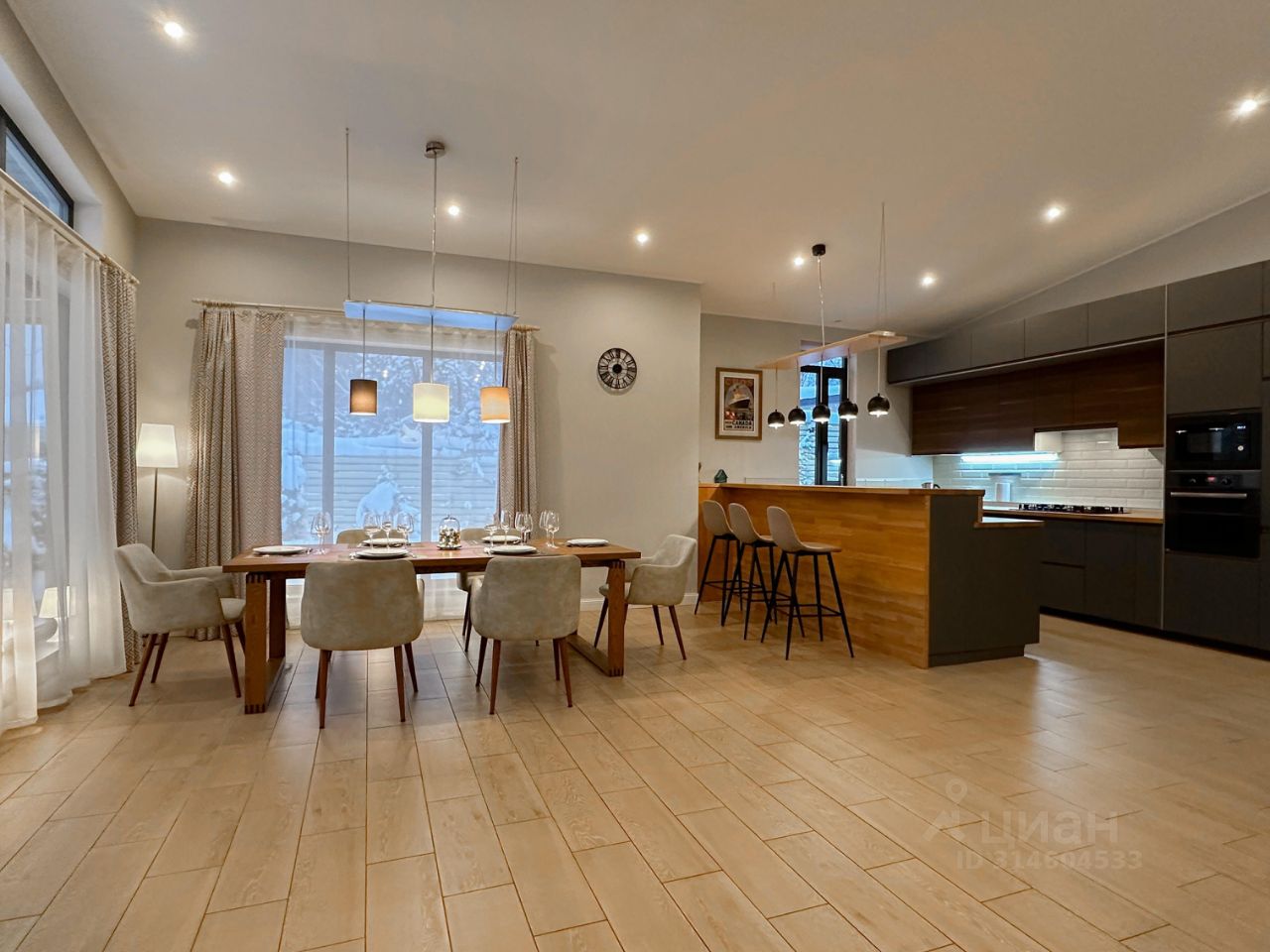 Грамотная планировка: большая кухня-гостиная с выходом на террасу под навесом, мастер-спальная со своим су, 2 спальни, кабинет (гостевая), су, постирочная. Дом оснащен приточно-вытяжной вентиляцией. Интернет Оптоволокно.