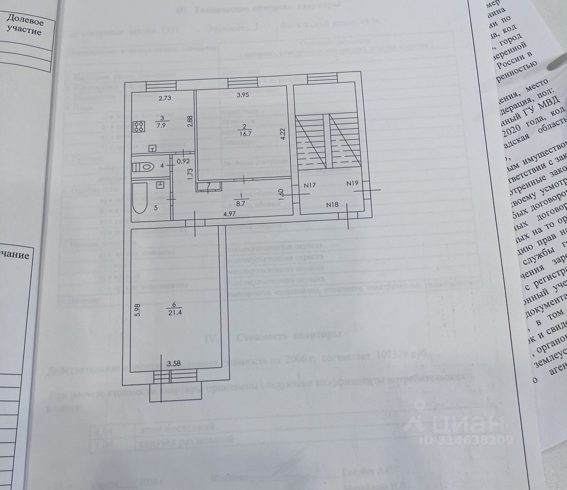 Общая: 60м ,жилая: 21м, и 17м, комнаты изолированные, прихожая: 7м .