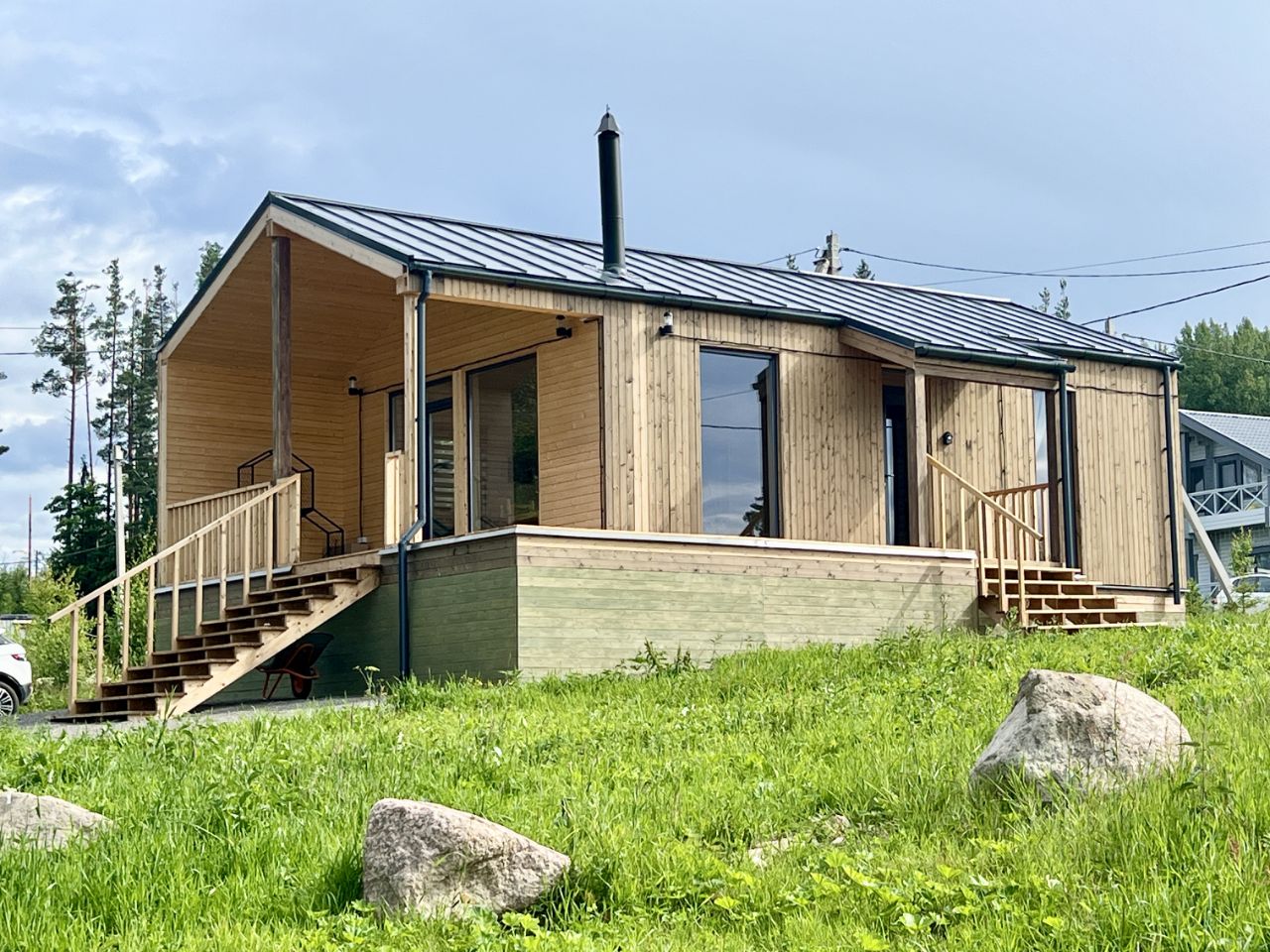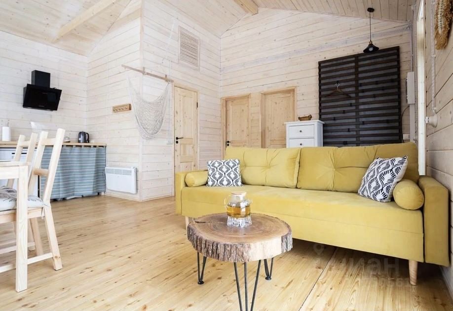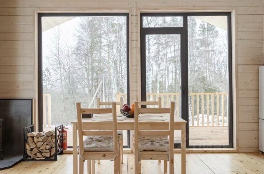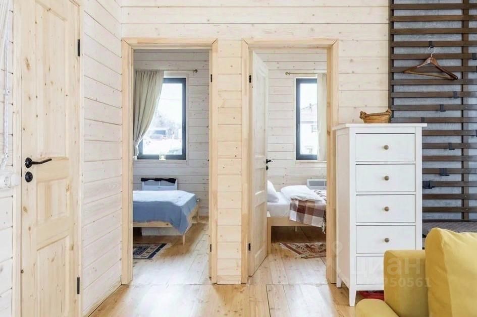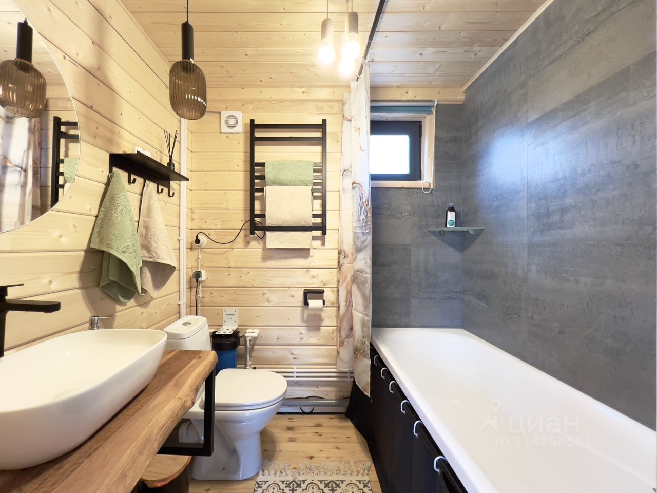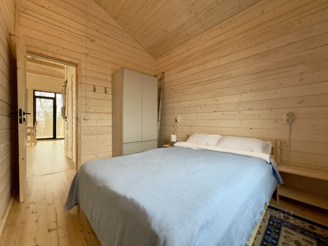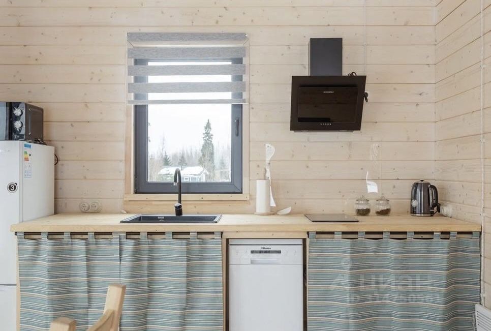 Планировка включает кухню-гостиную с камином, две спальни, ванную комната, просторную терраса. Панорамные окна дома выходят в сторону леса. Дом укомплектован всем необходимым для комфортного проживания. Предусмотрен подогрев полов, wi-fi, баня на дровах, купель.