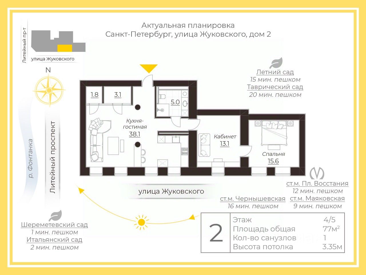 Арт. 97289058 2 спальни, 35 метров кухня гостиная, потолки 3,35, 7 фасадных больших окон, современный ремонт! Чистая, ухоженная парадная, лифт! В отделке квартиры использованы натуральные материалы -дерево, камень, часть стен расчищена до исторического кирпича. Семь окон выходят на улицу Жуковского с видом на крыши противоположных домов и Литейный проспект. В квартире есть все необходимое для жизни, установлены кондиционеры, встроенная мебель и техника. Можно сразу заехать и жить. Двухкомнатная квартира обладает непередаваемым сочетанием питерского шарма и современного течения жизни. Высокие потолки и интерьер с легким намеком на лофт придают особую эстетику. Неспешным шагом вы дойдете до всех достопримечательностей Санкт-Петербурга - Михайловского замка, Марсова поля, Летнего Сада , Шереметьевского сада, Итальянского сада, набережной Фонтанки, Спаса на Крови. Поверьте, почувствовать атмосферу и шарм нашего прекрасного города можно живя только в его исторических районах. Парадная с лифтом. Историческая широкая лестница с кованными узорчатыми перилами. Приглашаем Вас на просмотр!