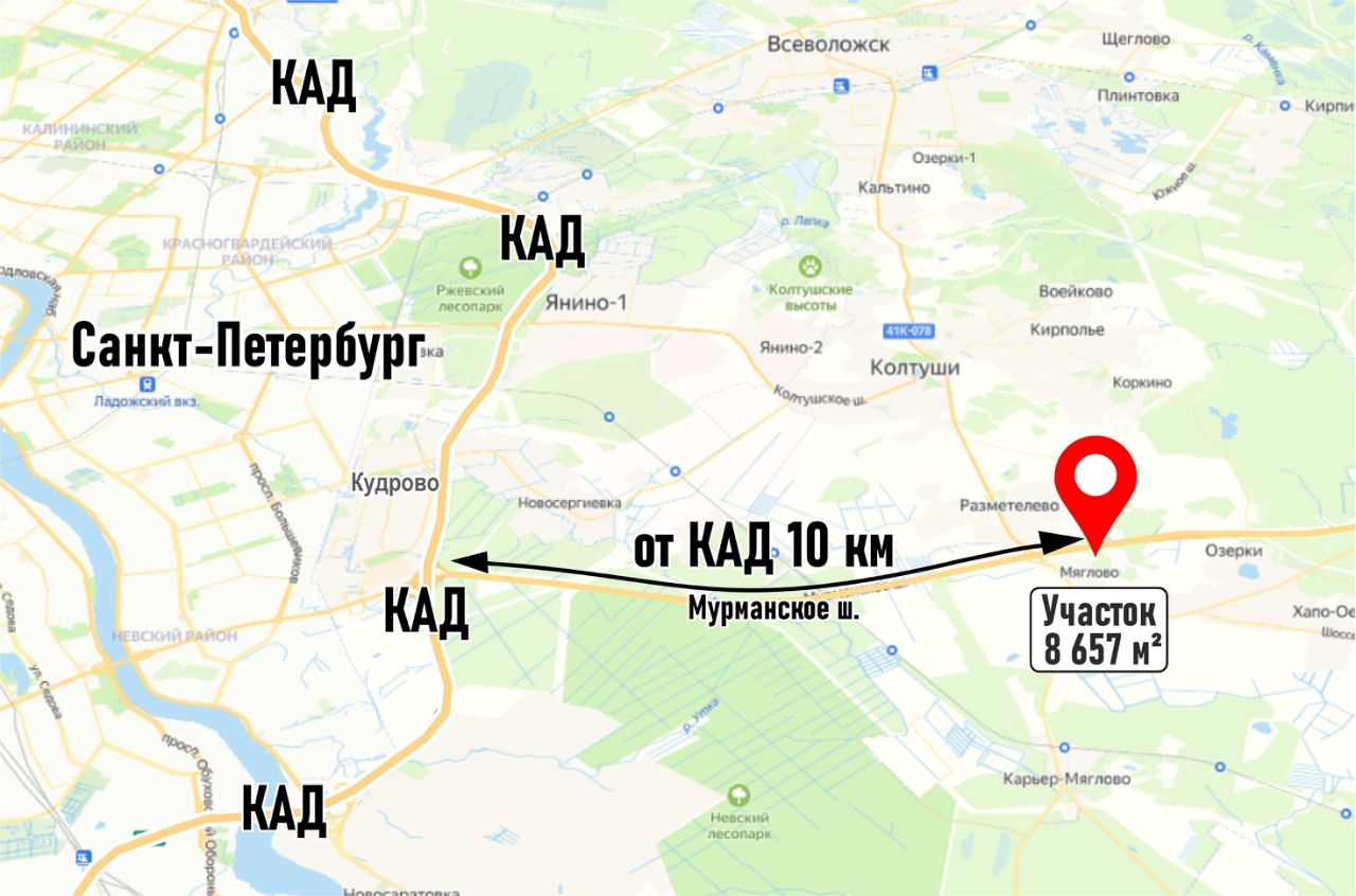 Объект забронирован. Документы готовятся к сделке. Продажа уникального земельного участка 0,87 Га расположенного по адресу: Ленинградская область, Всеволожский муниципальный район, Колтушское сельское поселение в 10 км от КАД на выезде из СПб. Номер объекта: 100_195-2