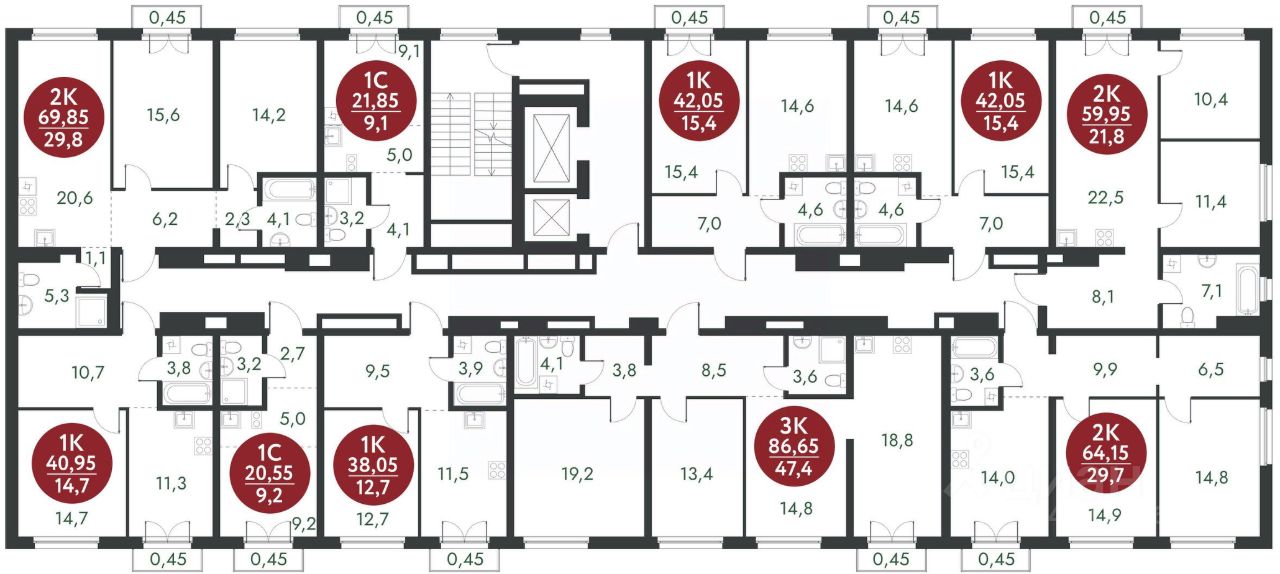 Общая площадь40,95 м2