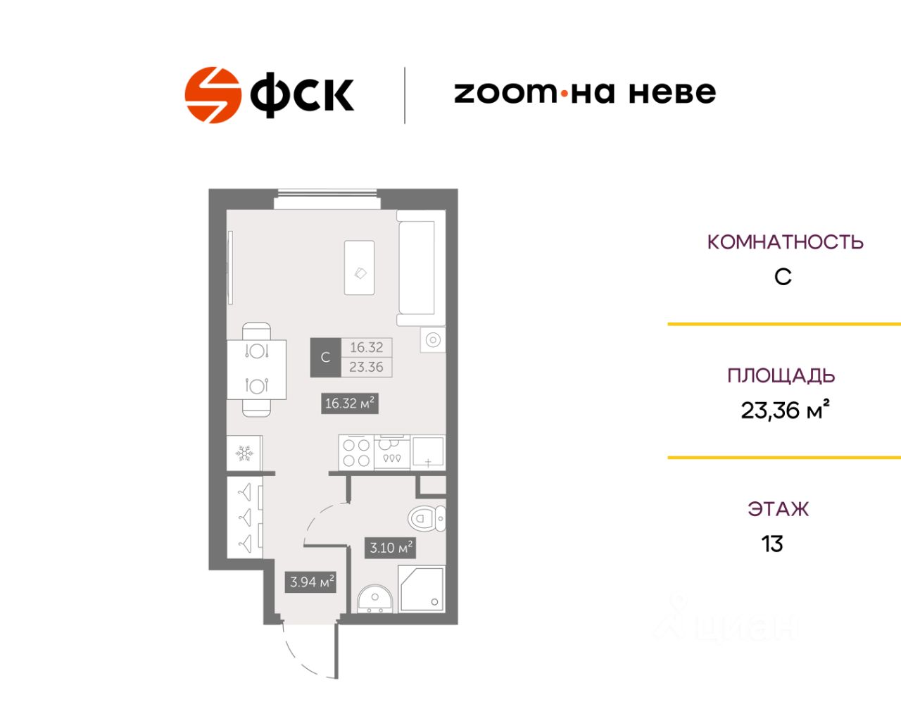 Цена со скидкой до 30% в прямой продаже от застройщика — только в этом месяце. При покупке апартаментов - паркинг за полцены. На все апартаменты действует беспроцентная рассрочка. Купите на распродаже! Покупка недвижимости в Zoom на Неве сейчас со скидкой до 30% позволит через 2 года получить доход до 6 300 000 руб. Роскошные виды на Неву. Апартамент-студия в комплексе класса бизнес-лайт Zoom на Неве на 13-м этаже. Общая площадь 23,36. Без отделки.