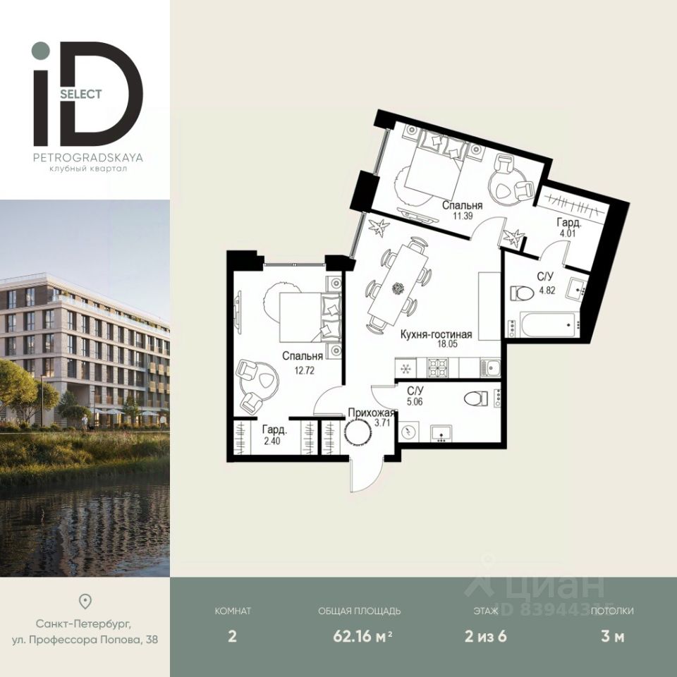 Клубный квартал iD Petrogradskaya на ул. Профессора Попова, 38 объединяет современную архитектуру, удобные планировки и развитую инфраструктуру, предлагая комфортную жизнь в престижном районе Санкт-Петербурга. Из квартир открываются виды на Иоанновский монастырь и реку Карповку. В шаговой доступности три станции метро: ''Петроградская'', ''Чкаловская'' и ''Чёрная речка''. 3-метровые потолки и эксклюзивные планировки создают атмосферу простора и уюта. Внутреннее пространство квартала включает благоустроенные дворы, курдонёры и подземный паркинг. Квартиры площадью от 20 до 136 м² с кухнями-гостиными до 40 м² и террасами с панорамными видами сдаются без отделки, оставляя свободу для индивидуальных интерьерных решений.