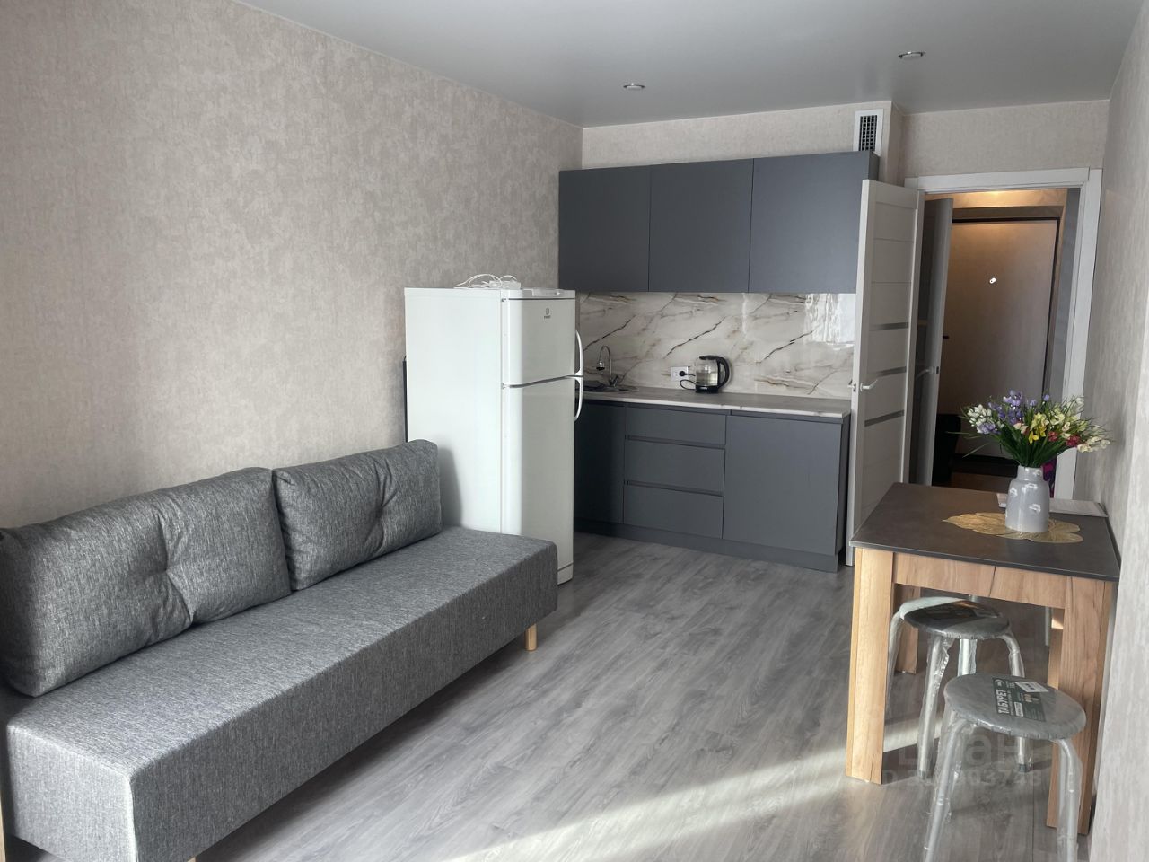 Сдаётся уютная студия в новом доме по адресу: Ленинградская область, Всеволожский район, Мурино, улица Шоссе в Лаврики, 95. Квартира расположена на 14 этаже 15-этажного дома, построенного в 2023 году. Общая площадь студии составляет 23,2 кв. м. Квартира сдается впервые . В квартире сделан евроремонт. Жилая зона и кухня оборудованы необходимой мебелью. На кухне есть холодильник , в сан узле стиральная машина. Окна квартиры выходят на улицу, что обеспечивает много естественного света в течение дня. Балкона нет .