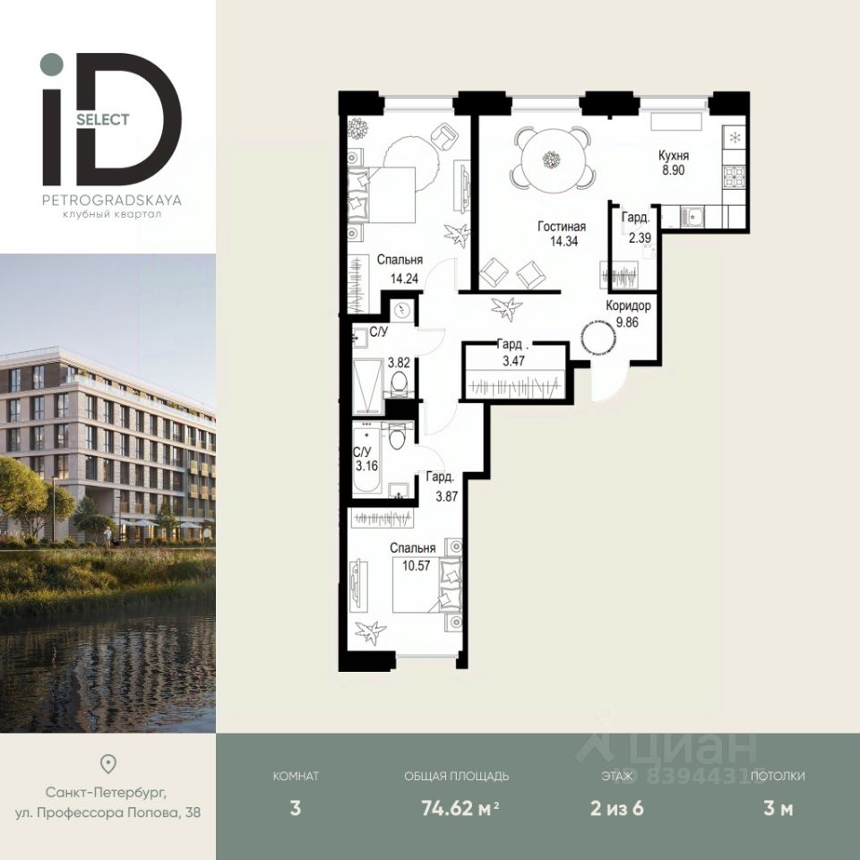 Клубный квартал iD Petrogradskaya на ул. Профессора Попова, 38 объединяет современную архитектуру, удобные планировки и развитую инфраструктуру, предлагая комфортную жизнь в престижном районе Санкт-Петербурга. Из квартир открываются виды на Иоанновский монастырь и реку Карповку. В шаговой доступности три станции метро: ''Петроградская'', ''Чкаловская'' и ''Чёрная речка''. 3-метровые потолки и эксклюзивные планировки создают атмосферу простора и уюта. Внутреннее пространство квартала включает благоустроенные дворы, курдонёры и подземный паркинг. Квартиры площадью от 20 до 136 м² с кухнями-гостиными до 40 м² и террасами с панорамными видами сдаются без отделки, оставляя свободу для индивидуальных интерьерных решений. Рядом ведущие вузы (ЛЭТИ, ИТМО), школы, детские сады, спортивные клубы, Ботанический и Вяземский сады. Удобный выезд на ЗСД, 10 минут до аэропорта Пулково. На территории квартала - кафе, рестораны, медицинские центры, детские и спортивные площадки.