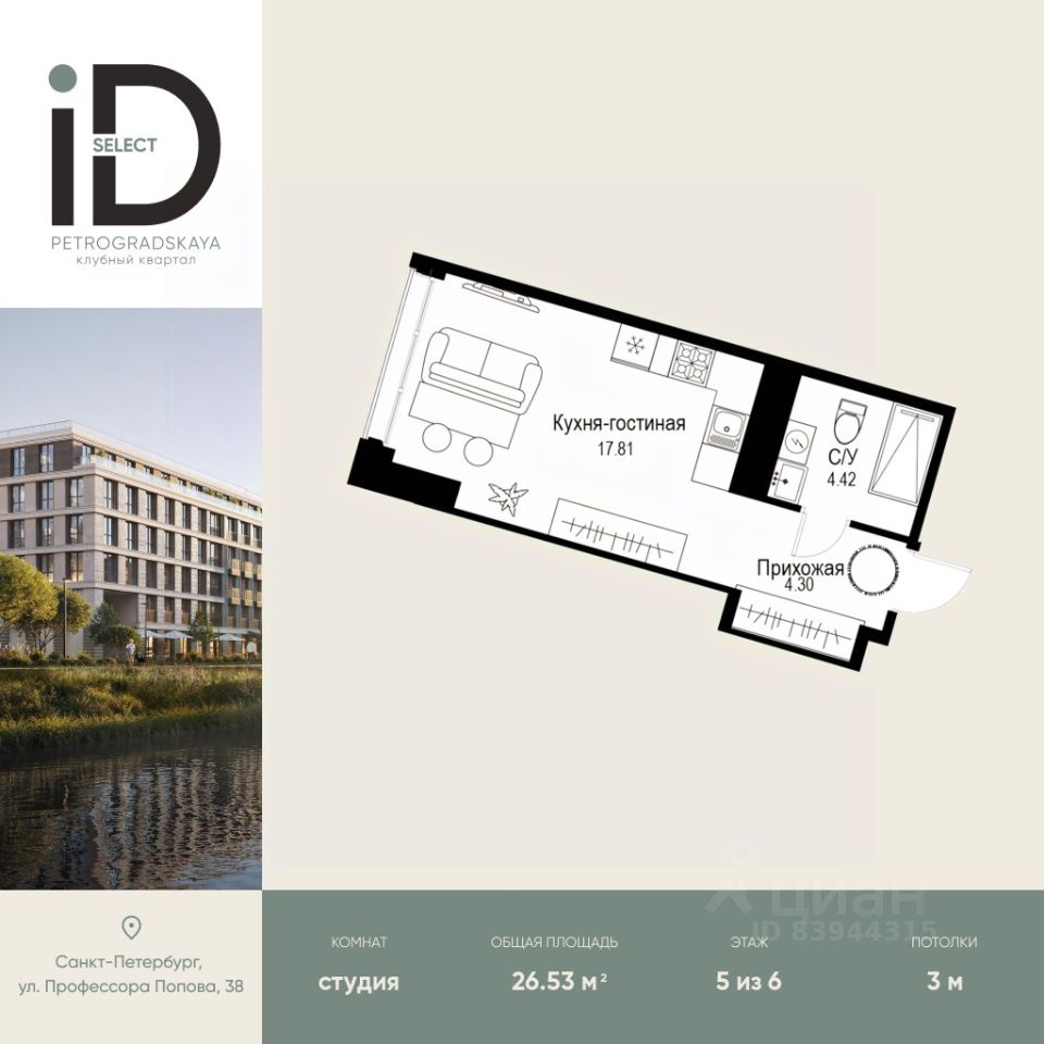 Клубный квартал iD Petrogradskaya на ул. Профессора Попова, 38 объединяет современную архитектуру, удобные планировки и развитую инфраструктуру, предлагая комфортную жизнь в престижном районе Санкт-Петербурга. Из квартир открываются виды на Иоанновский монастырь и реку Карповку. В шаговой доступности три станции метро: ''Петроградская'', ''Чкаловская'' и ''Чёрная речка''. 3-метровые потолки и эксклюзивные планировки создают атмосферу простора и уюта. Внутреннее пространство квартала включает благоустроенные дворы, курдонёры и подземный паркинг. Квартиры площадью от 20 до 136 м² с кухнями-гостиными до 40 м² и террасами с панорамными видами сдаются без отделки, оставляя свободу для индивидуальных интерьерных решений. Рядом ведущие вузы (ЛЭТИ, ИТМО), школы, детские сады, спортивные клубы, Ботанический и Вяземский сады. Удобный выезд на ЗСД, 10 минут до аэропорта Пулково. На территории квартала - кафе, рестораны, медицинские центры, детские и спортивные площадки.
