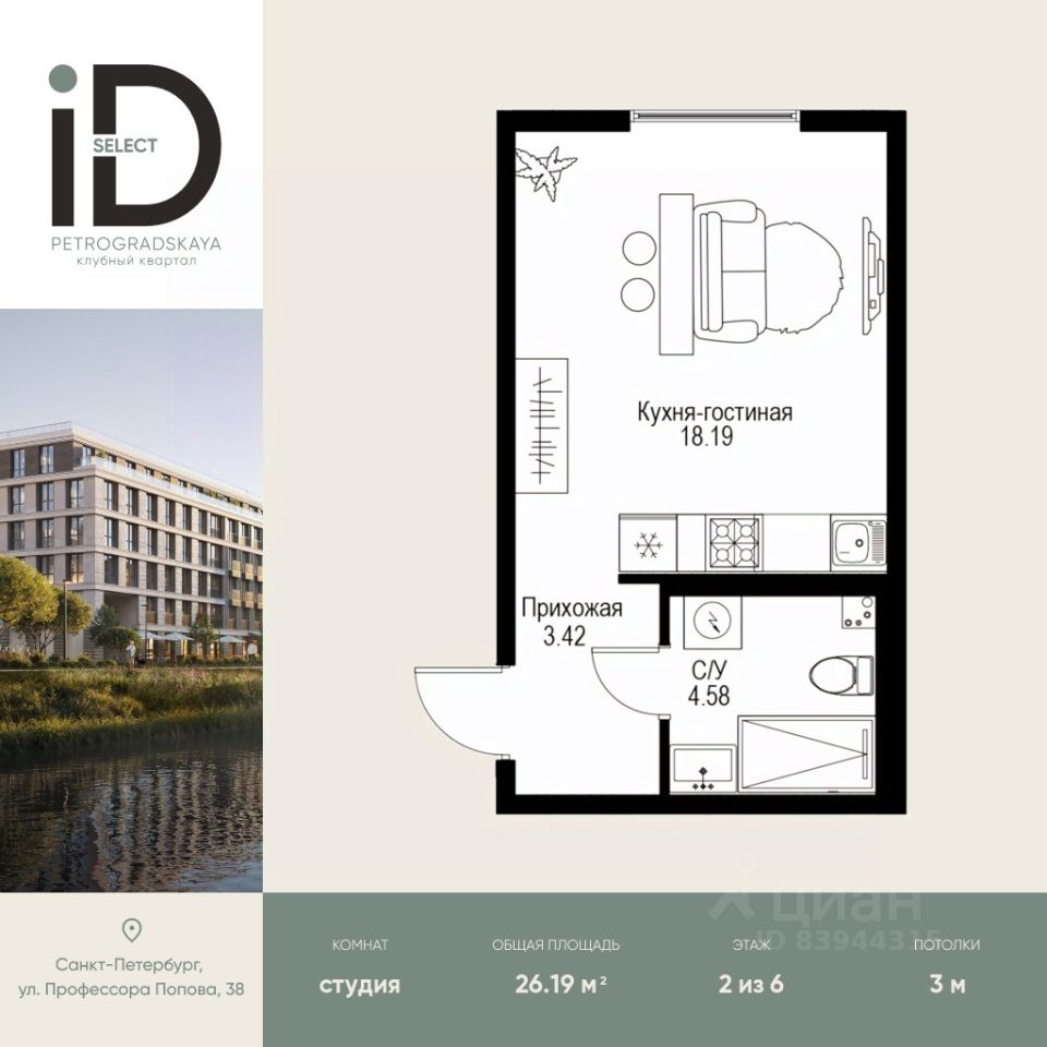 Клубный квартал iD Petrogradskaya на ул. Профессора Попова, 38 объединяет современную архитектуру, удобные планировки и развитую инфраструктуру, предлагая комфортную жизнь в престижном районе Санкт-Петербурга. Из квартир открываются виды на Иоанновский монастырь и реку Карповку. В шаговой доступности три станции метро: ''Петроградская'', ''Чкаловская'' и ''Чёрная речка''. 3-метровые потолки и эксклюзивные планировки создают атмосферу простора и уюта. Внутреннее пространство квартала включает благоустроенные дворы, курдонёры и подземный паркинг. Квартиры площадью от 20 до 136 м² с кухнями-гостиными до 40 м² и террасами с панорамными видами сдаются без отделки, оставляя свободу для индивидуальных интерьерных решений.