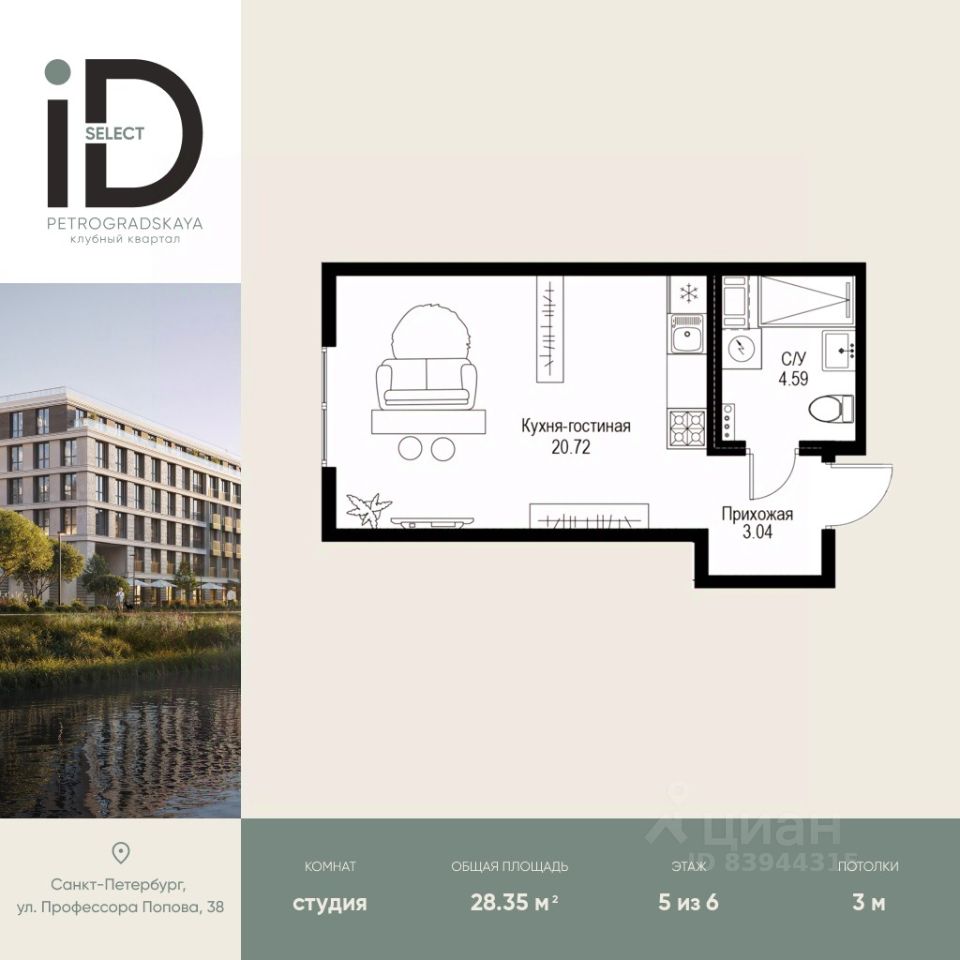 Клубный квартал iD Petrogradskaya на ул. Профессора Попова, 38 объединяет современную архитектуру, удобные планировки и развитую инфраструктуру, предлагая комфортную жизнь в престижном районе Санкт-Петербурга. Из квартир открываются виды на Иоанновский монастырь и реку Карповку. В шаговой доступности три станции метро: ''Петроградская'', ''Чкаловская'' и ''Чёрная речка''. 3-метровые потолки и эксклюзивные планировки создают атмосферу простора и уюта. Внутреннее пространство квартала включает благоустроенные дворы, курдонёры и подземный паркинг. Квартиры площадью от 20 до 136 м² с кухнями-гостиными до 40 м² и террасами с панорамными видами сдаются без отделки, оставляя свободу для индивидуальных интерьерных решений.