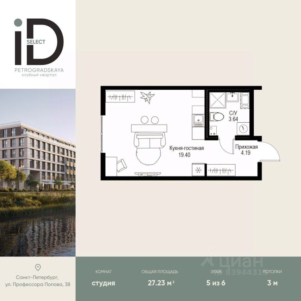 Клубный квартал iD Petrogradskaya на ул. Профессора Попова, 38 объединяет современную архитектуру, удобные планировки и развитую инфраструктуру, предлагая комфортную жизнь в престижном районе Санкт-Петербурга. Из квартир открываются виды на Иоанновский монастырь и реку Карповку. В шаговой доступности три станции метро: ''Петроградская'', ''Чкаловская'' и ''Чёрная речка''. 3-метровые потолки и эксклюзивные планировки создают атмосферу простора и уюта. Внутреннее пространство квартала включает благоустроенные дворы, курдонёры и подземный паркинг. Квартиры площадью от 20 до 136 м² с кухнями-гостиными до 40 м² и террасами с панорамными видами сдаются без отделки, оставляя свободу для индивидуальных интерьерных решений.