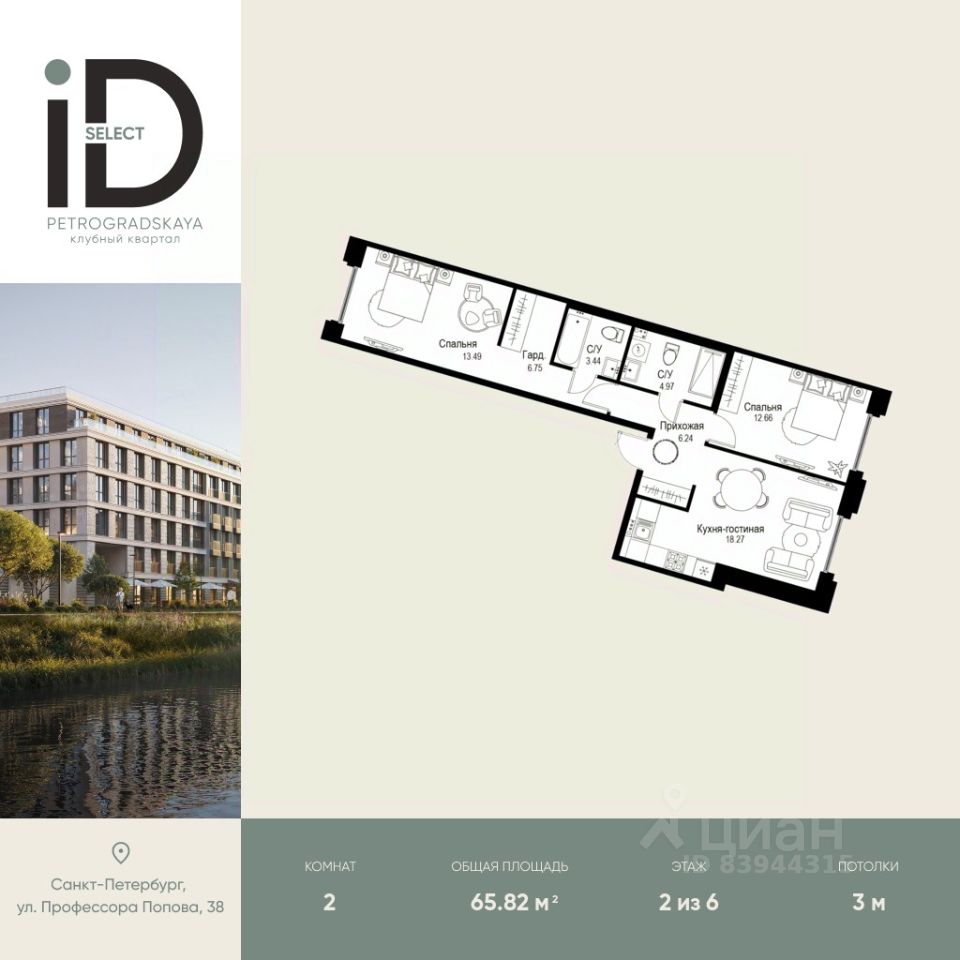 Клубный квартал iD Petrogradskaya на ул. Профессора Попова, 38 объединяет современную архитектуру, удобные планировки и развитую инфраструктуру, предлагая комфортную жизнь в престижном районе Санкт-Петербурга. Из квартир открываются виды на Иоанновский монастырь и реку Карповку. В шаговой доступности три станции метро: ''Петроградская'', ''Чкаловская'' и ''Чёрная речка''. 3-метровые потолки и эксклюзивные планировки создают атмосферу простора и уюта. Внутреннее пространство квартала включает благоустроенные дворы, курдонёры и подземный паркинг. Квартиры площадью от 20 до 136 м² с кухнями-гостиными до 40 м² и террасами с панорамными видами сдаются без отделки, оставляя свободу для индивидуальных интерьерных решений.