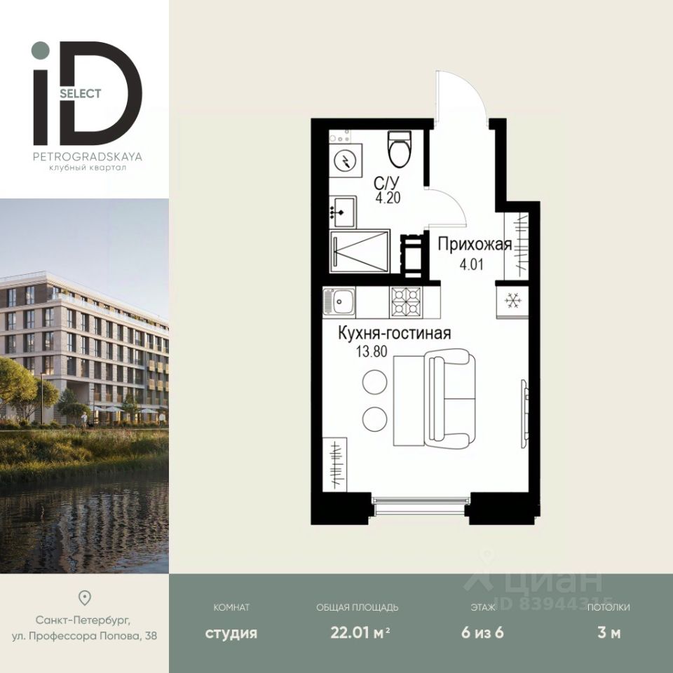 Клубный квартал iD Petrogradskaya на ул. Профессора Попова, 38 объединяет современную архитектуру, удобные планировки и развитую инфраструктуру, предлагая комфортную жизнь в престижном районе Санкт-Петербурга. Из квартир открываются виды на Иоанновский монастырь и реку Карповку. В шаговой доступности три станции метро: ''Петроградская'', ''Чкаловская'' и ''Чёрная речка''. 3-метровые потолки и эксклюзивные планировки создают атмосферу простора и уюта. Внутреннее пространство квартала включает благоустроенные дворы, курдонёры и подземный паркинг. Квартиры площадью от 20 до 136 м² с кухнями-гостиными до 40 м² и террасами с панорамными видами сдаются без отделки, оставляя свободу для индивидуальных интерьерных решений.