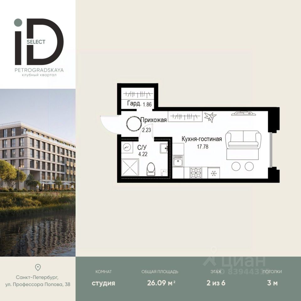 Клубный квартал iD Petrogradskaya на ул. Профессора Попова, 38 объединяет современную архитектуру, удобные планировки и развитую инфраструктуру, предлагая комфортную жизнь в престижном районе Санкт-Петербурга. Из квартир открываются виды на Иоанновский монастырь и реку Карповку. В шаговой доступности три станции метро: ''Петроградская'', ''Чкаловская'' и ''Чёрная речка''. 3-метровые потолки и эксклюзивные планировки создают атмосферу простора и уюта. Внутреннее пространство квартала включает благоустроенные дворы, курдонёры и подземный паркинг. Квартиры площадью от 20 до 136 м² с кухнями-гостиными до 40 м² и террасами с панорамными видами сдаются без отделки, оставляя свободу для индивидуальных интерьерных решений.