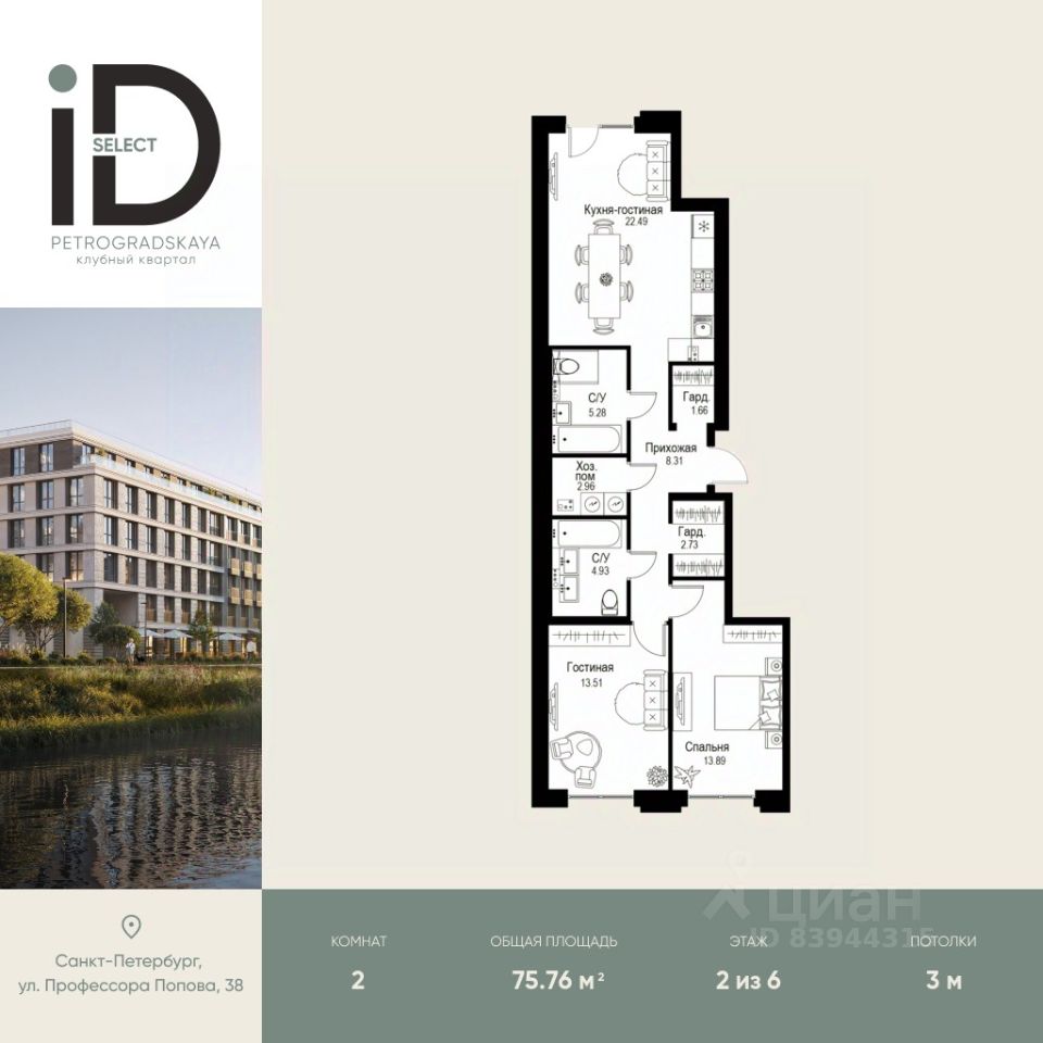 Клубный квартал iD Petrogradskaya на ул. Профессора Попова, 38 объединяет современную архитектуру, удобные планировки и развитую инфраструктуру, предлагая комфортную жизнь в престижном районе Санкт-Петербурга. Из квартир открываются виды на Иоанновский монастырь и реку Карповку. В шаговой доступности три станции метро: ''Петроградская'', ''Чкаловская'' и ''Чёрная речка''. 3-метровые потолки и эксклюзивные планировки создают атмосферу простора и уюта. Внутреннее пространство квартала включает благоустроенные дворы, курдонёры и подземный паркинг. Квартиры площадью от 20 до 136 м² с кухнями-гостиными до 40 м² и террасами с панорамными видами сдаются без отделки, оставляя свободу для индивидуальных интерьерных решений.