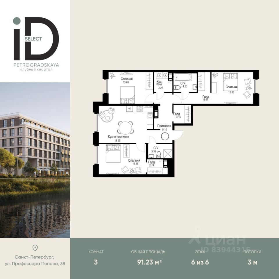 Клубный квартал iD Petrogradskaya на ул. Профессора Попова, 38 объединяет современную архитектуру, удобные планировки и развитую инфраструктуру, предлагая комфортную жизнь в престижном районе Санкт-Петербурга. Из квартир открываются виды на Иоанновский монастырь и реку Карповку. В шаговой доступности три станции метро: ''Петроградская'', ''Чкаловская'' и ''Чёрная речка''. 3-метровые потолки и эксклюзивные планировки создают атмосферу простора и уюта. Внутреннее пространство квартала включает благоустроенные дворы, курдонёры и подземный паркинг. Квартиры площадью от 20 до 136 м² с кухнями-гостиными до 40 м² и террасами с панорамными видами сдаются без отделки, оставляя свободу для индивидуальных интерьерных решений.