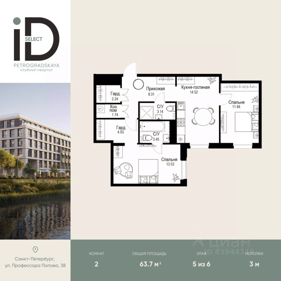 Клубный квартал iD Petrogradskaya на ул. Профессора Попова, 38 объединяет современную архитектуру, удобные планировки и развитую инфраструктуру, предлагая комфортную жизнь в престижном районе Санкт-Петербурга. Из квартир открываются виды на Иоанновский монастырь и реку Карповку. В шаговой доступности три станции метро: ''Петроградская'', ''Чкаловская'' и ''Чёрная речка''. 3-метровые потолки и эксклюзивные планировки создают атмосферу простора и уюта. Внутреннее пространство квартала включает благоустроенные дворы, курдонёры и подземный паркинг. Квартиры площадью от 20 до 136 м² с кухнями-гостиными до 40 м² и террасами с панорамными видами сдаются без отделки, оставляя свободу для индивидуальных интерьерных решений. Рядом ведущие вузы (ЛЭТИ, ИТМО), школы, детские сады, спортивные клубы, Ботанический и Вяземский сады. Удобный выезд на ЗСД, 10 минут до аэропорта Пулково. На территории квартала - кафе, рестораны, медицинские центры, детские и спортивные площадки.