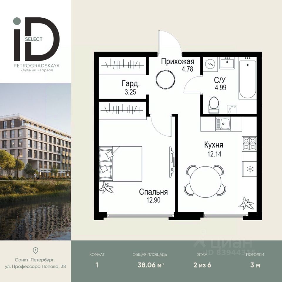 Клубный квартал iD Petrogradskaya на ул. Профессора Попова, 38 объединяет современную архитектуру, удобные планировки и развитую инфраструктуру, предлагая комфортную жизнь в престижном районе Санкт-Петербурга. Из квартир открываются виды на Иоанновский монастырь и реку Карповку. В шаговой доступности три станции метро: ''Петроградская'', ''Чкаловская'' и ''Чёрная речка''. 3-метровые потолки и эксклюзивные планировки создают атмосферу простора и уюта. Внутреннее пространство квартала включает благоустроенные дворы, курдонёры и подземный паркинг. Квартиры площадью от 20 до 136 м² с кухнями-гостиными до 40 м² и террасами с панорамными видами сдаются без отделки, оставляя свободу для индивидуальных интерьерных решений.