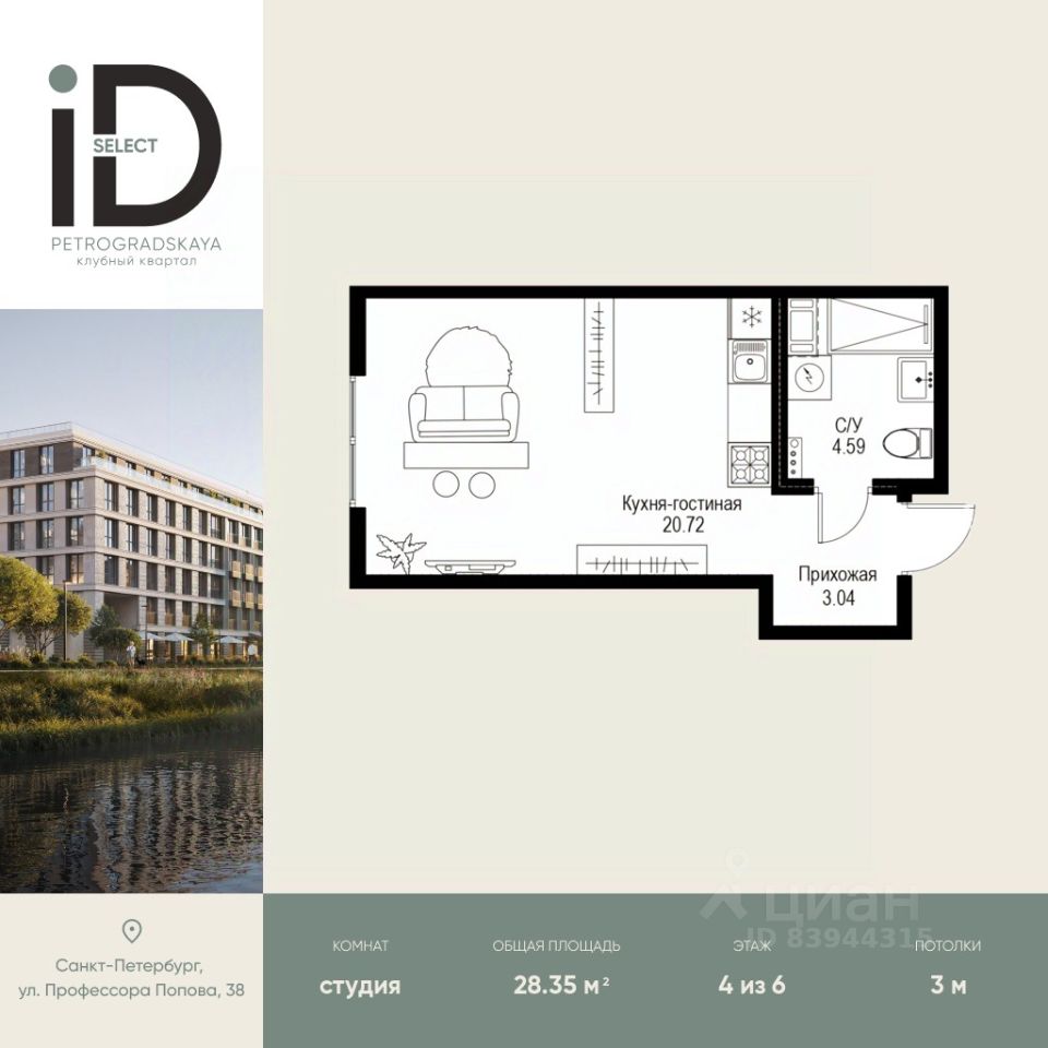 Клубный квартал iD Petrogradskaya на ул. Профессора Попова, 38 объединяет современную архитектуру, удобные планировки и развитую инфраструктуру, предлагая комфортную жизнь в престижном районе Санкт-Петербурга. Из квартир открываются виды на Иоанновский монастырь и реку Карповку. В шаговой доступности три станции метро: ''Петроградская'', ''Чкаловская'' и ''Чёрная речка''. 3-метровые потолки и эксклюзивные планировки создают атмосферу простора и уюта. Внутреннее пространство квартала включает благоустроенные дворы, курдонёры и подземный паркинг. Квартиры площадью от 20 до 136 м² с кухнями-гостиными до 40 м² и террасами с панорамными видами сдаются без отделки, оставляя свободу для индивидуальных интерьерных решений.
