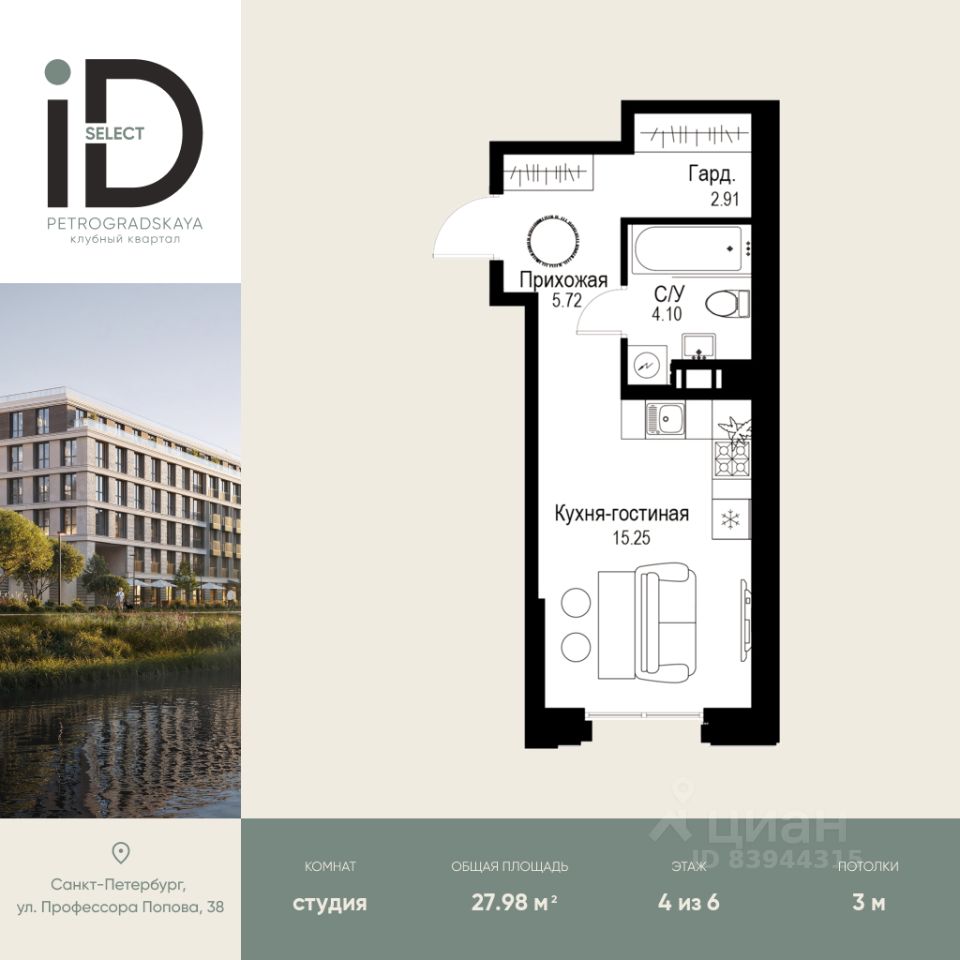 Клубный квартал iD Petrogradskaya на ул. Профессора Попова, 38 объединяет современную архитектуру, удобные планировки и развитую инфраструктуру, предлагая комфортную жизнь в престижном районе Санкт-Петербурга. Из квартир открываются виды на Иоанновский монастырь и реку Карповку. В шаговой доступности три станции метро: ''Петроградская'', ''Чкаловская'' и ''Чёрная речка''. 3-метровые потолки и эксклюзивные планировки создают атмосферу простора и уюта. Внутреннее пространство квартала включает благоустроенные дворы, курдонёры и подземный паркинг. Квартиры площадью от 20 до 136 м² с кухнями-гостиными до 40 м² и террасами с панорамными видами сдаются без отделки, оставляя свободу для индивидуальных интерьерных решений.