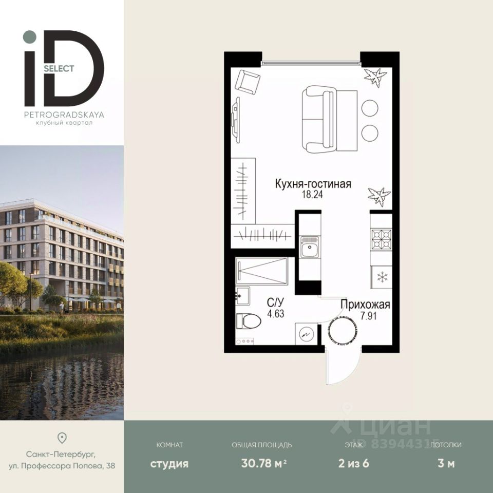 Клубный квартал iD Petrogradskaya на ул. Профессора Попова, 38 объединяет современную архитектуру, удобные планировки и развитую инфраструктуру, предлагая комфортную жизнь в престижном районе Санкт-Петербурга. Из квартир открываются виды на Иоанновский монастырь и реку Карповку. В шаговой доступности три станции метро: ''Петроградская'', ''Чкаловская'' и ''Чёрная речка''. 3-метровые потолки и эксклюзивные планировки создают атмосферу простора и уюта. Внутреннее пространство квартала включает благоустроенные дворы, курдонёры и подземный паркинг. Квартиры площадью от 20 до 136 м² с кухнями-гостиными до 40 м² и террасами с панорамными видами сдаются без отделки, оставляя свободу для индивидуальных интерьерных решений.