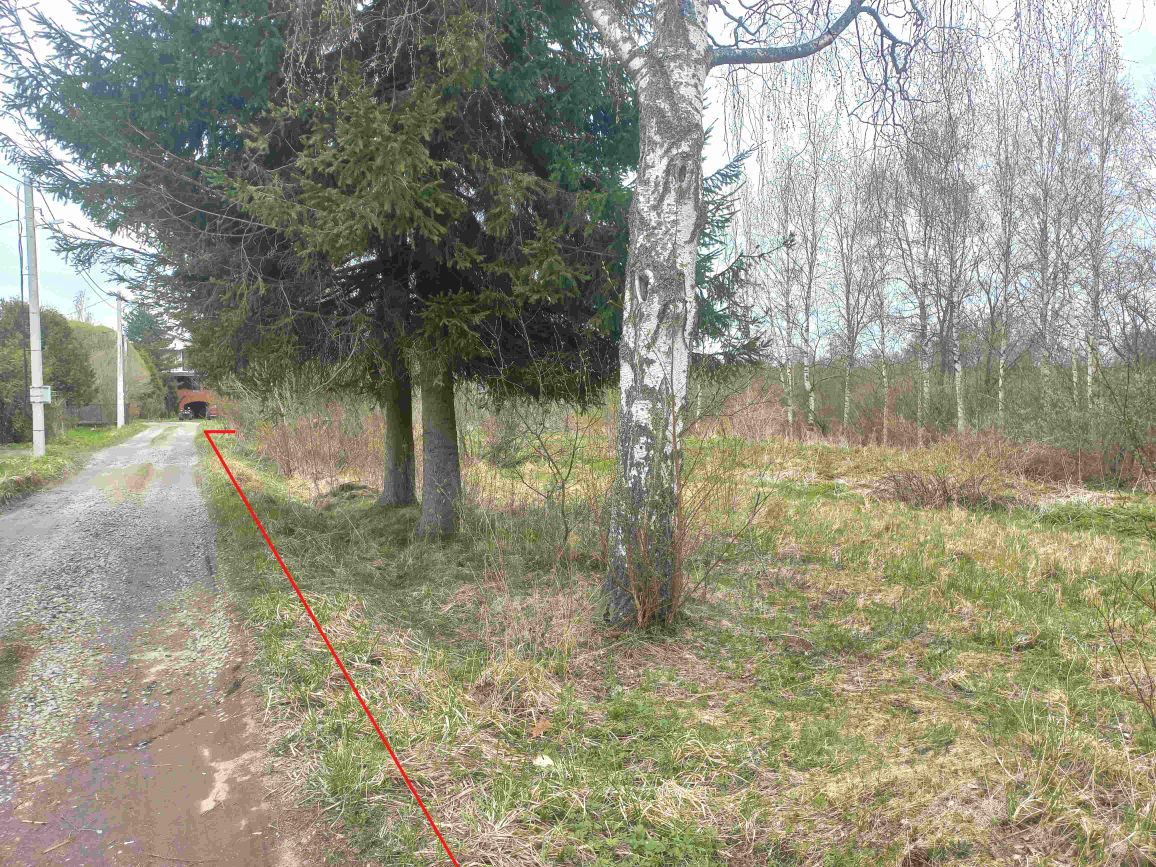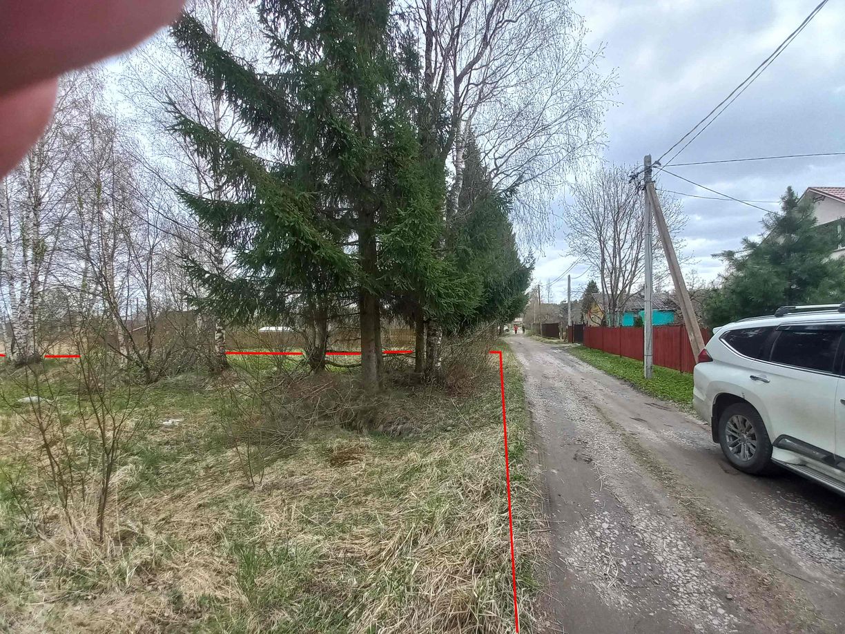 Половина участка деревья, вторая половина поляна. Улица муниципальная, чистится регулярно. Соседи живут круглогодично.