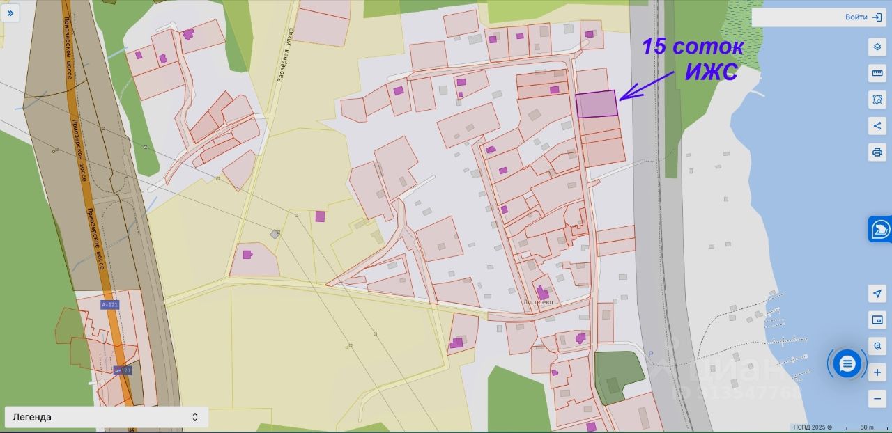 Участок на тихой улице, но в пешей доступности вся инфраструктура курортного поселка, а также остановка общественного транспорта в город, ж/д платформа Лосево, река Вуокса и Лосевские пороги.