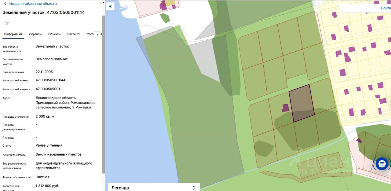 Кадастровый номер участка: 47:03:0505001:44.