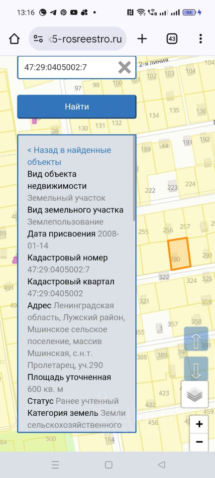 47:29:0405002:7 участок в садоводстве с адекватными соседями круглогодично проживающими. участок правильной формы, не стоит в воде-это важно!!! таких в продаже практически нет в этом садоводстве. дороги чистятся-фото зимние приложила,