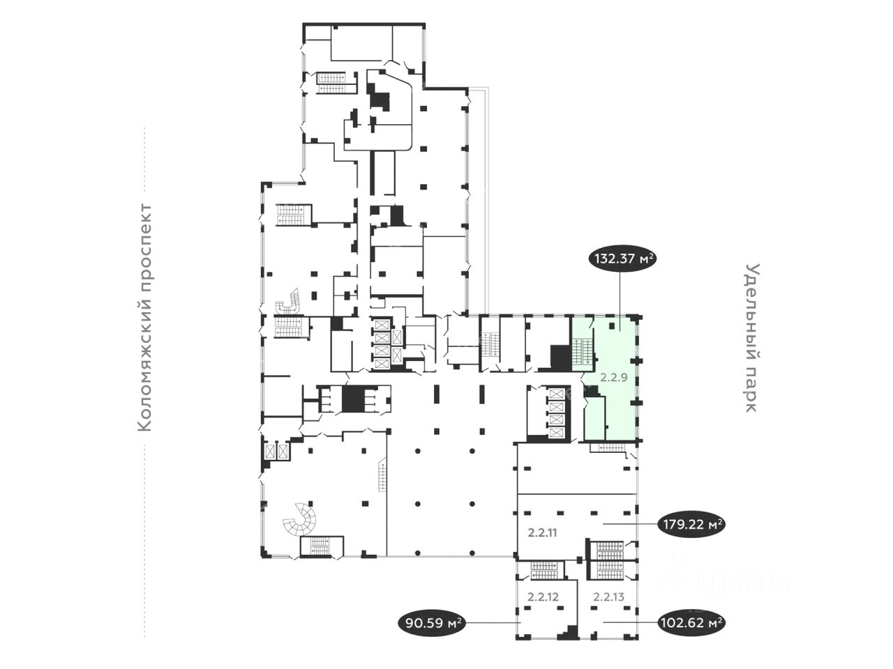 Офисное помещение 132.4 кв. м в бизнес-центре Saan. Прямая продажа, без комиссии. Объект на стадии активного строительства, готовность ко въезду уточняется по запросу.