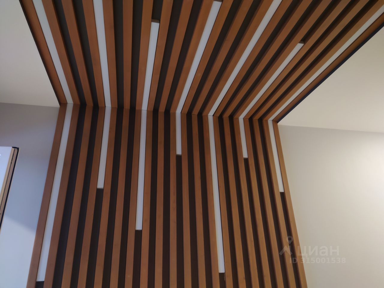 1. Регулируемое освещение, в виде декоративного углового потолочно-стенового деревянного рельефного панно