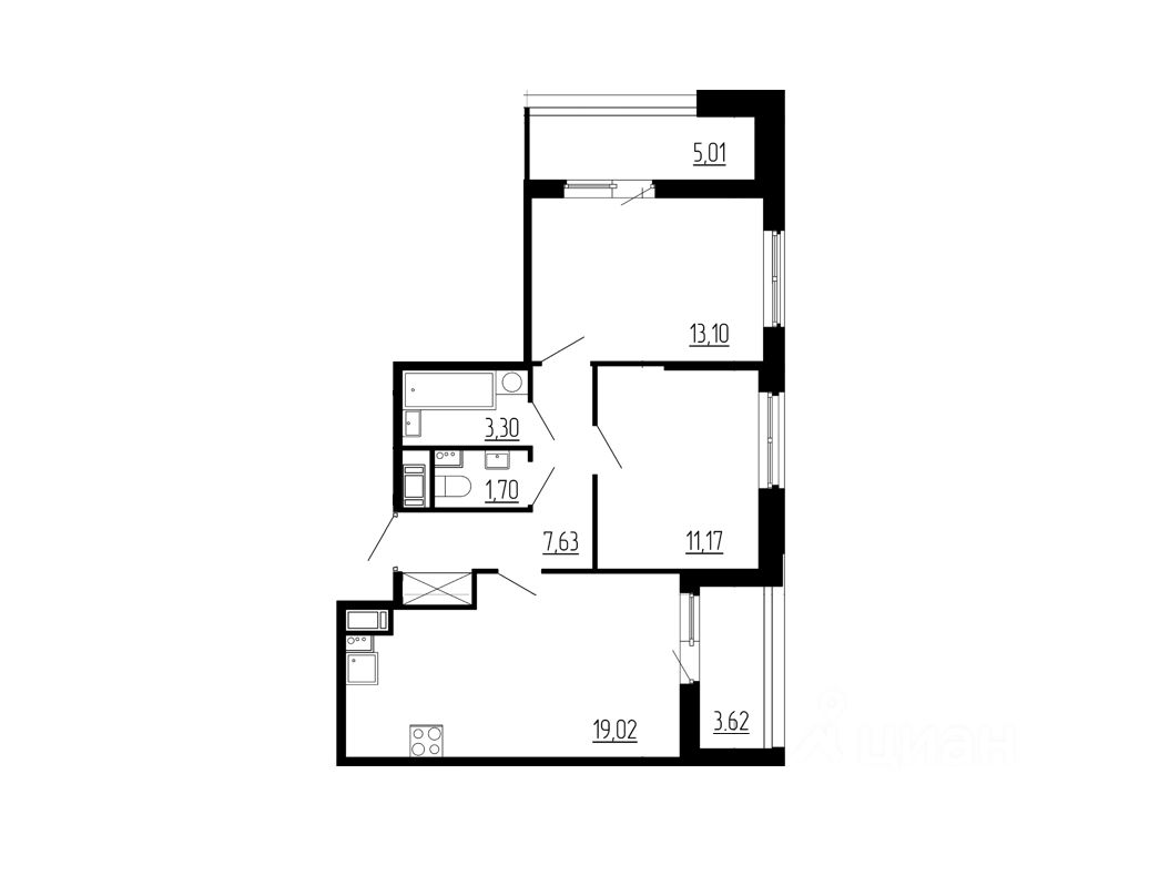 Продается стильная ВИДОВАЯ двухкомнатная квартира в новом доме 2024 года постройки по адресу: Санкт-Петербург, Светлановский проспект, 14к1. Общая площадь квартиры составляет 60,24 кв. м, из которых 24,27 кв. м — жилая площадь и просторная кухня размером 19,02 кв. м. Квартира расположена на 11 этаже 12-этажного монолитно-кирпичного дома, что открывает вид во двор и обеспечивает тишину и уют.