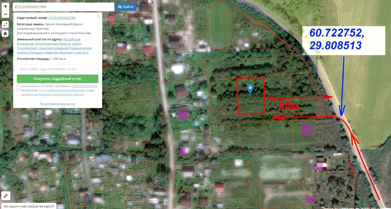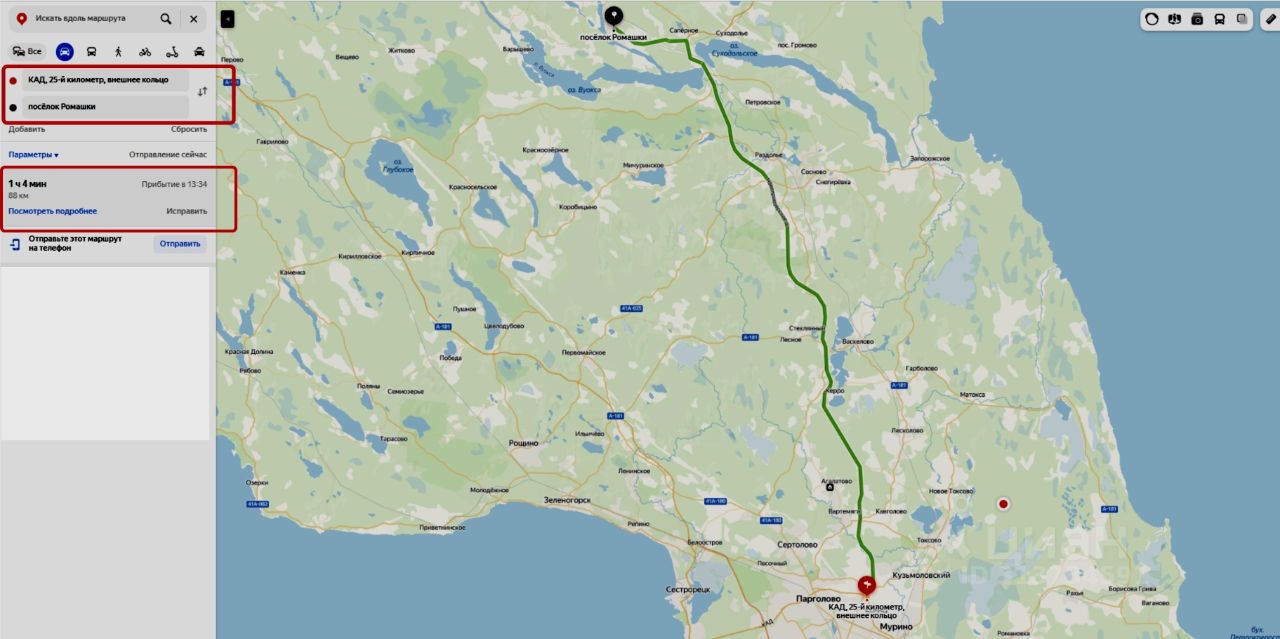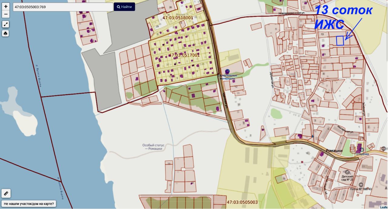В 88 км от КАД, пос. Ромашки, участок 13 соток ИЖС (милицейский адрес, прописка, нет никаких взносов), с небольшим перепадом высот, наполовину с деревьями (лиственными).