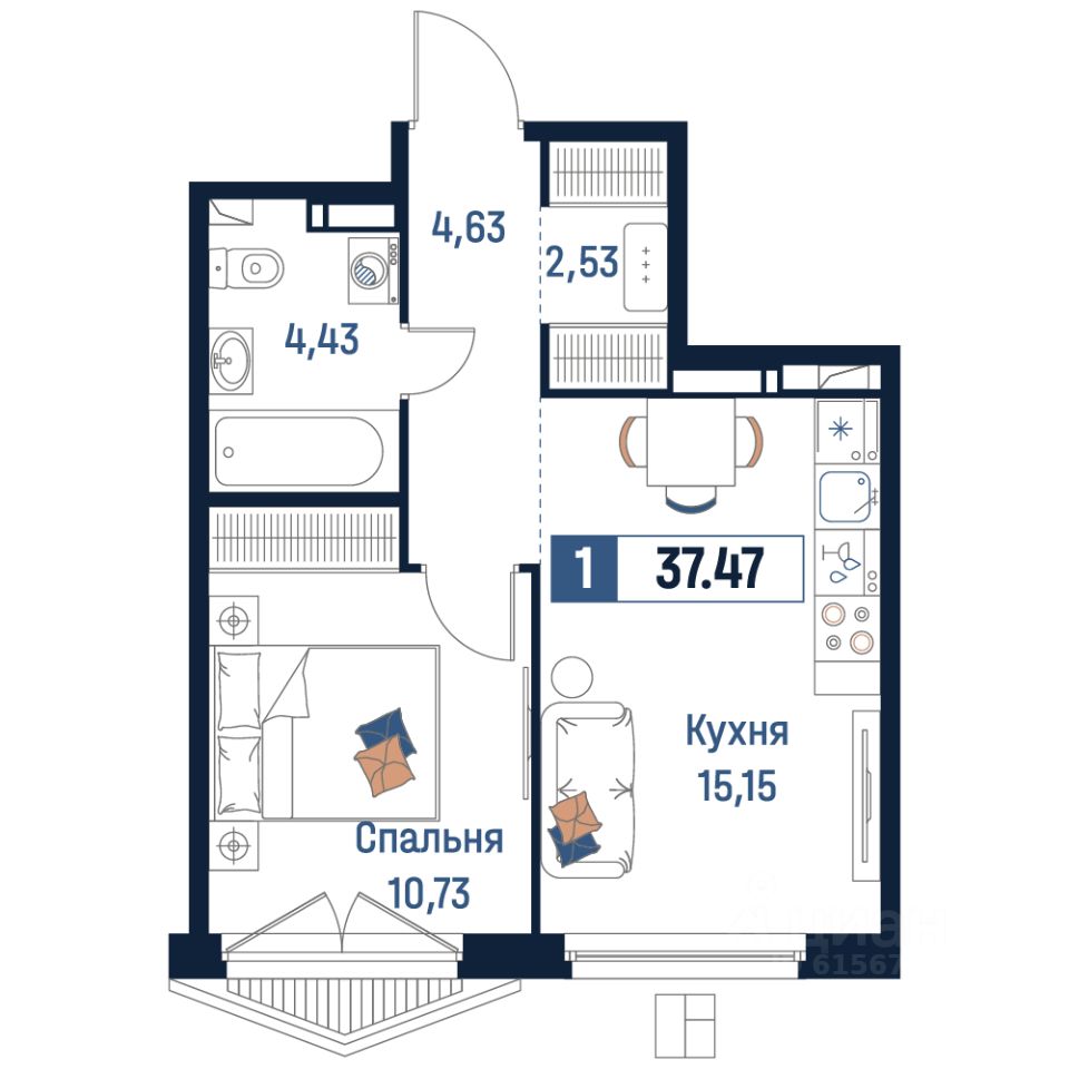 Общая площадь37,47 м2
