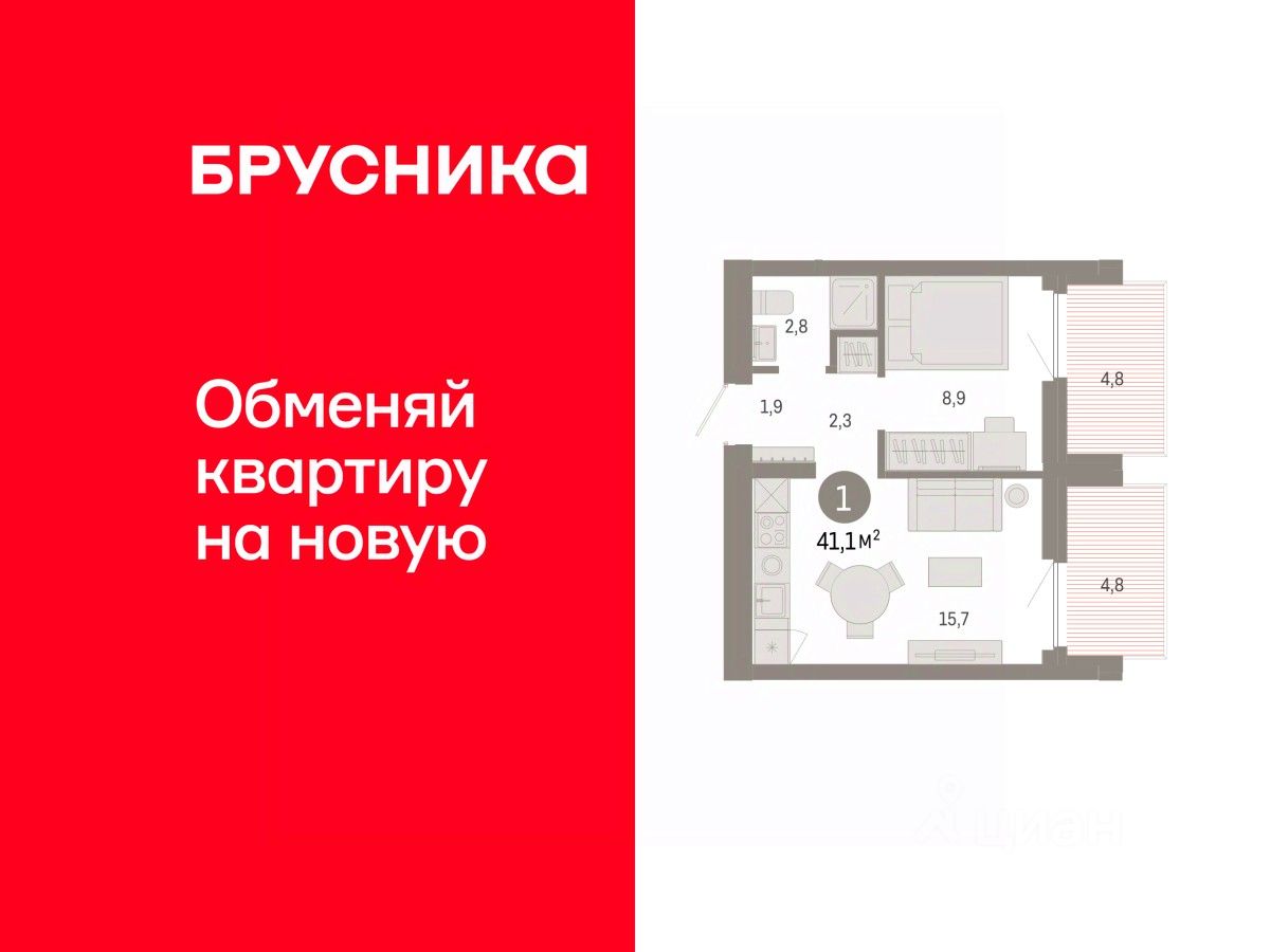 продам 1-к, Краснообск, 10/6 стр.5 800 000 ₽