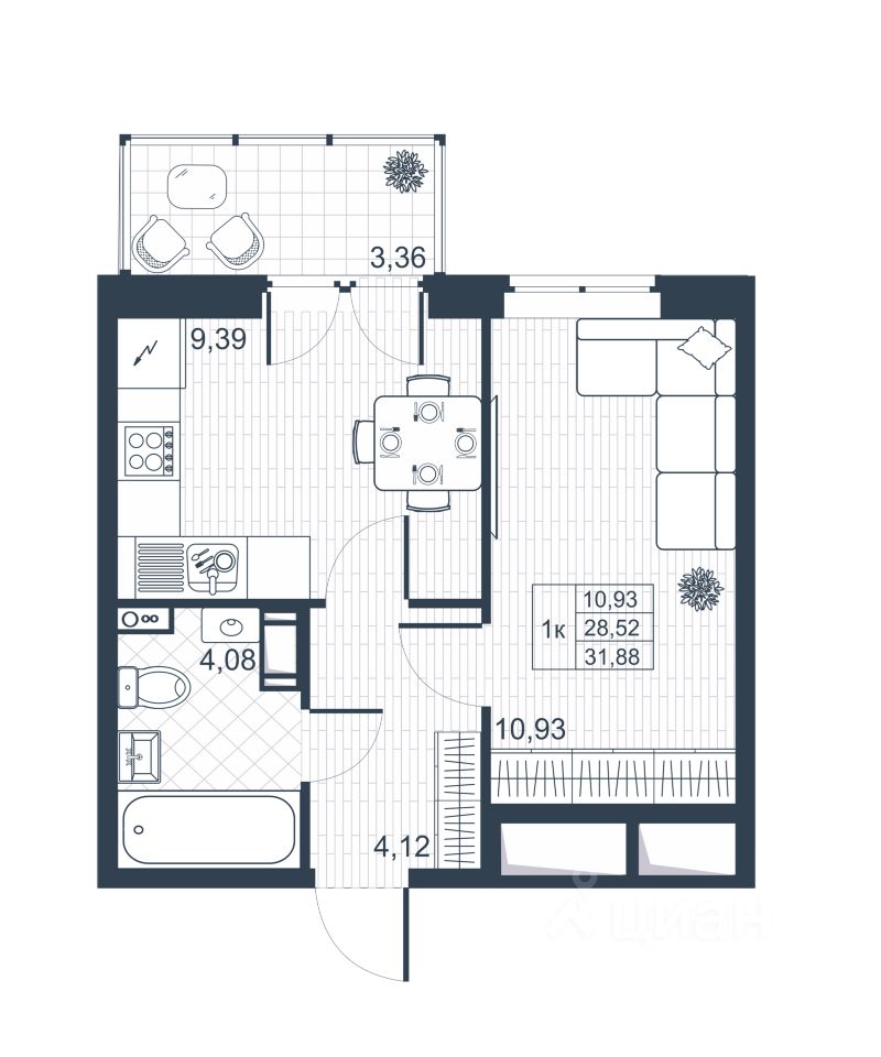 Общая площадь29,53 м2