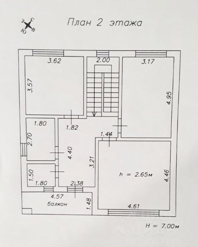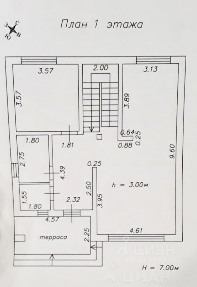 1 этаж: прихожая, кухня-гостиная, изолированная комната, бойлерная, с/у с душевой, баня: туалет, душевая, большой холл. 2 этаж: холл, 3 изолированные комнаты, с/у с ванной, комната - прачечная.