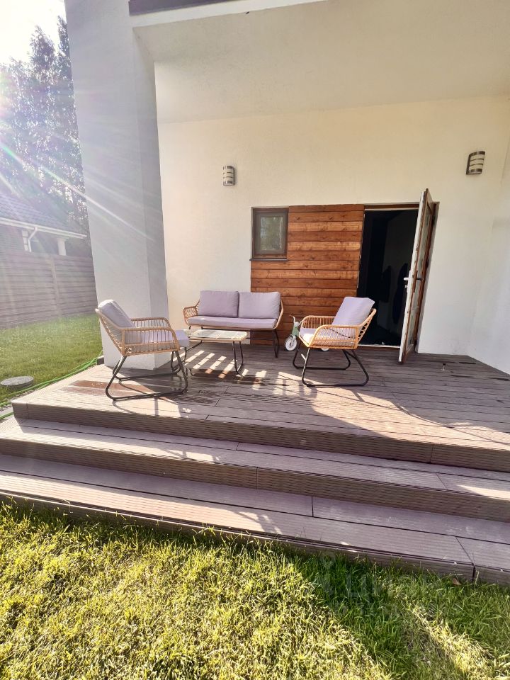 Технические характеристики дома: - Фундамент ростверк + монолитная плита - Монолитное перекрытие - Монолитная лестница - Стены газобетон 375 блок (d500) - Oкна энергоэффективные, 70 профиль - Фасад дома планкен + декоративная штукатура - Цоколь отделан камнем - Снегодержатели, водосточная система - Утепление кровли - Терраса - Материалы европейского производства (сантехника, обои, плитка и тд) - Дизайнерский проект - Станция биологической очистки Ital Bio 6 - Центральный газ - Электричество 15 кВт - ИЖС (без взносов, оплата по счетчикам: газ, свет). - До центра СПб - 35/40 мин.
