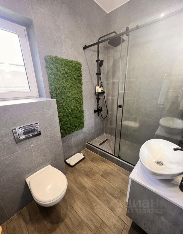 1 этаж: - Керамогранит, теплый пол - С/у с душевой, окном - Большие окна - Современная кухня с хорошей фурнитурой (кухня IKEA с островком) и видом на лес - Бойлерная (котел с удаленным управлением) - Монолитная лестница с перилами - Натяжные потолки - Баня с панорамными окнами (без чистовой отделки): туалет, душевая, большая парная, холл.