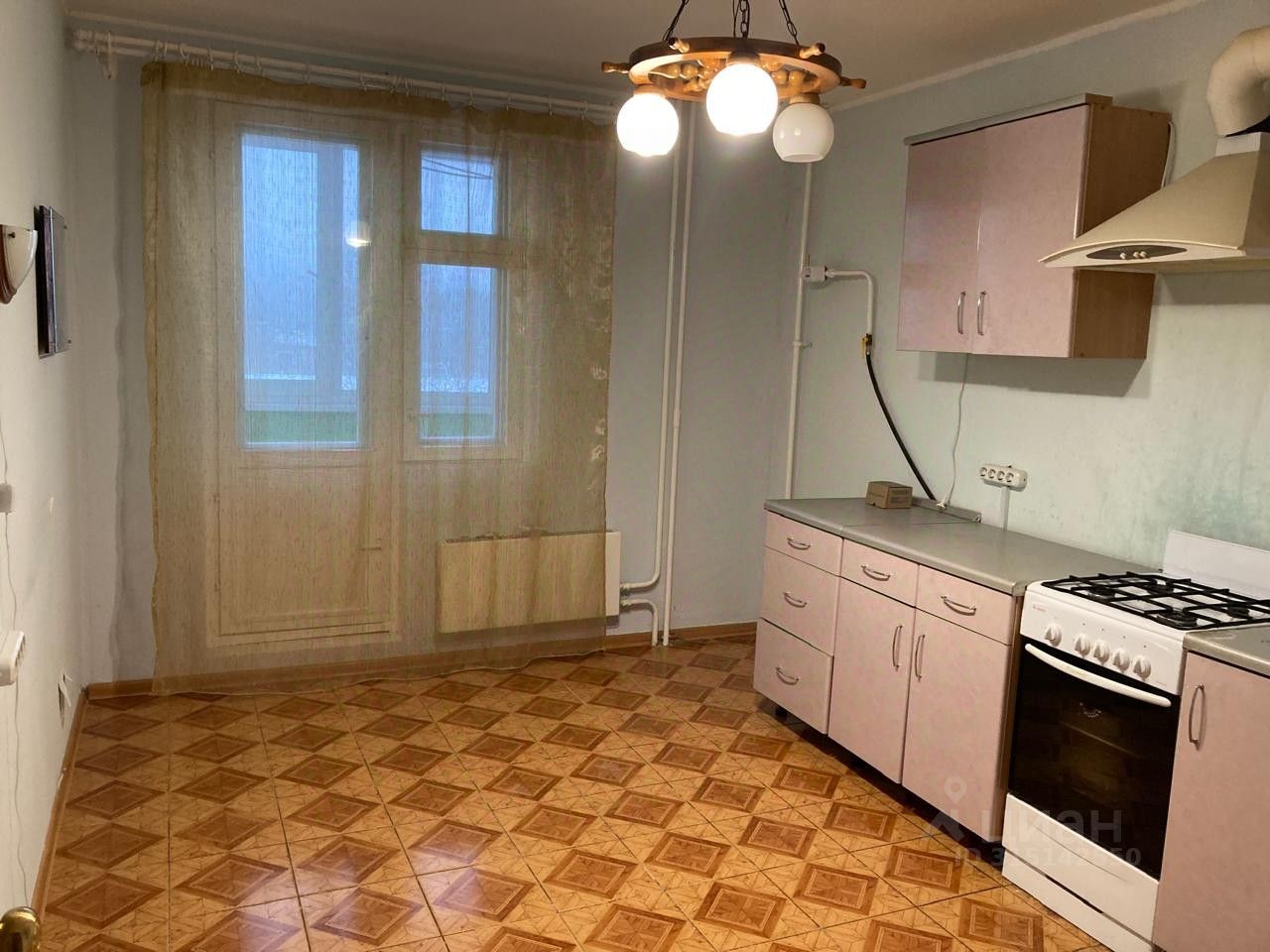 Встроенная кухня ,выход на балкон из кухни ,застеклен.