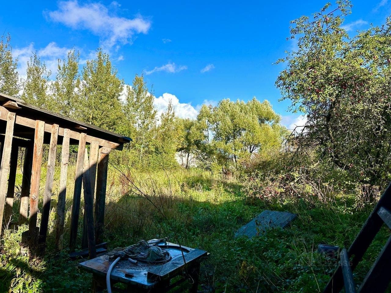 На участке есть остатки сгоревшего дома, он зарегистрирован как жилой, присвоен адрес, гараж для парковки машины и хозяйственных нужд.