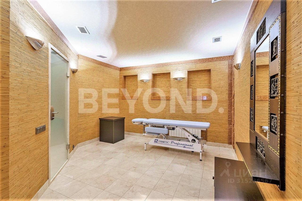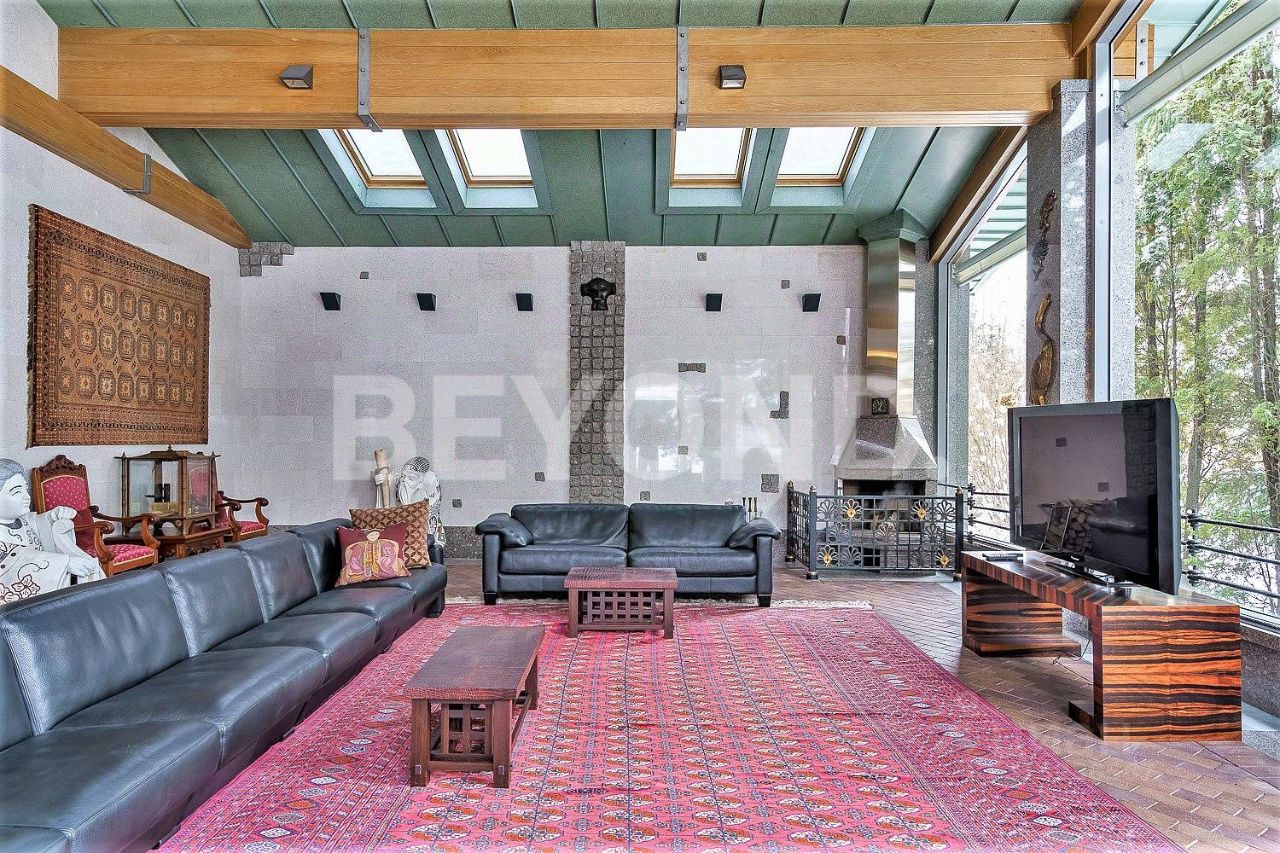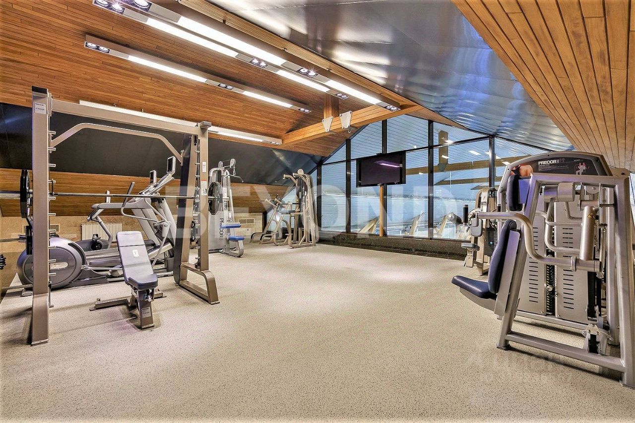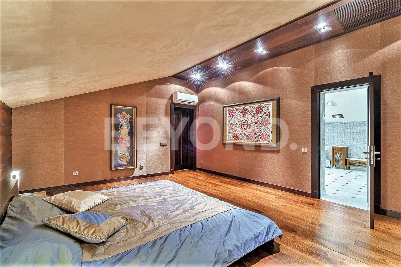 Пространство 1-го этажа основного дома представлено просторной гостиной зоной, кухонной и столовой зоной, обеденным залом, СПА-комплексом с 16-и метровым бассейном, русской и турецкой парной, а также каминным залом, кинотеатром, спальней с собственной ванной комнатой, постирочной и помещением для охраны. На 2-м этаже дома расположились 3 спальни, каждая с собственной ванной комнатой и зона отдыха.