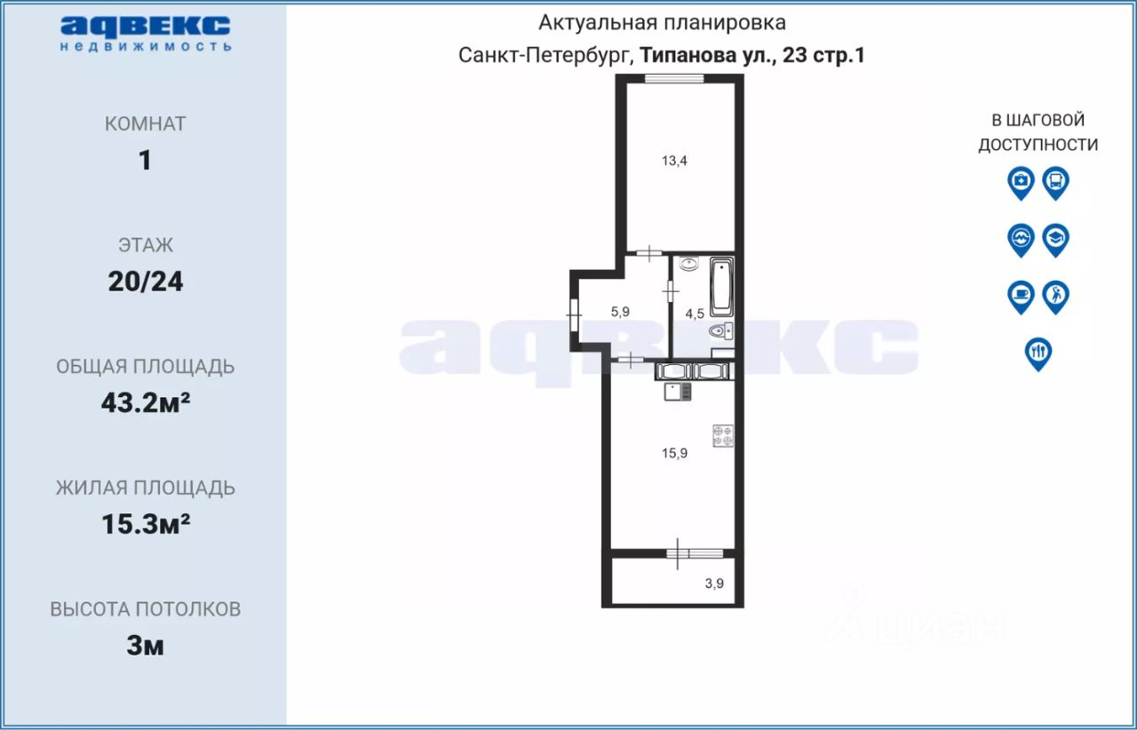 Удобная двусторонняя квартира в жилом комплексе бизнес-класса ''Питер'', застройщик ''Концерн Питер''. Остекленная лоджия-4,2 кв.м (приведенная площадь). Лифты OTIS, грузовой и пассажирский. Очень удобное местоположение: Чесменская церковь - 840м (9мин.пеш.), ТРК в шаговой доступности, Парк Победы - 1,5 км (15мин.пеш.). Хорошая транспортная доступность: до метро Московская 1,1 км (11 мин. пеш.). Предчистовая отделка. Ответственная управляющая компания.