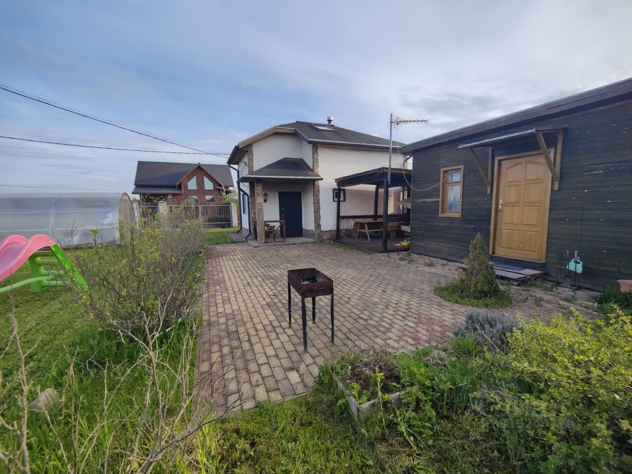 Вашему вниманию предлагается уютное загородное домовладение, состоящее из дома-бани 5*7 в 2 этажа, порядка 60м2 теплой площади, летней кухни, теплицы, дровника и навеса. Есть место для строительства основного дома. Участок по фасаду окружён забором из профилированной доски на кирпичных столбах с бетонной лентой. Подъезд асфальт. Образцовый поселок. Охрана, магазин, кафе, большая детская площадка, пруд, сквер с лавочками и беседками, поле для минифутбола и баскетбола, теннисный корт. В соседнем поселке (1,5км) детский сад с развивающими программами для разных возрастов, до муниципальной школы ходит школьный автобус, площадка для посадки и ожидания в 300 м от въезда в поселок. Есть озеро. Самое лучшее расположение в поселке - последняя, тупиковая улица, очень спокойно, отличные соседи.