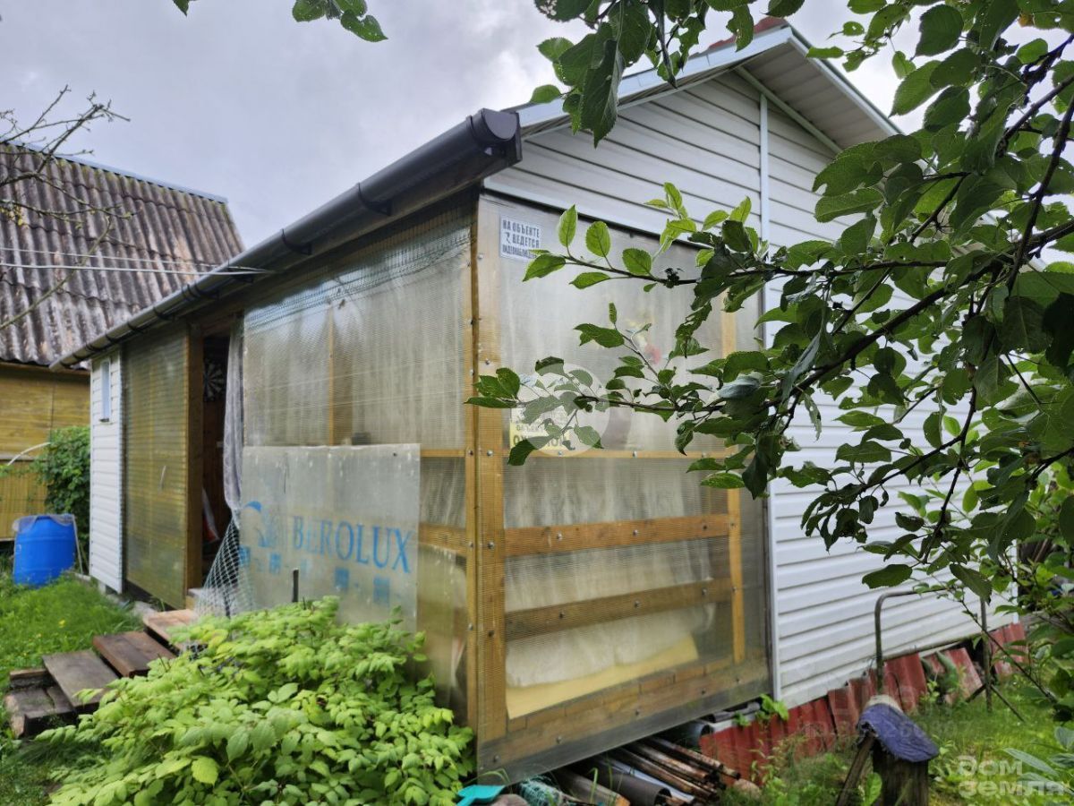 На участке: На участке баня с комнатой отдыха. Очень тёплое помещение. Можно использовать и в зимний период. К бане пристроена веранда. Использование которой может быть различным. Есть сарай с дровами. Участок разработан и ухожен, растут плодовые деревья и ягодные кустарники, цветы. В двух поликарбонатных теплицах растут огурцы и зреют помидоры.