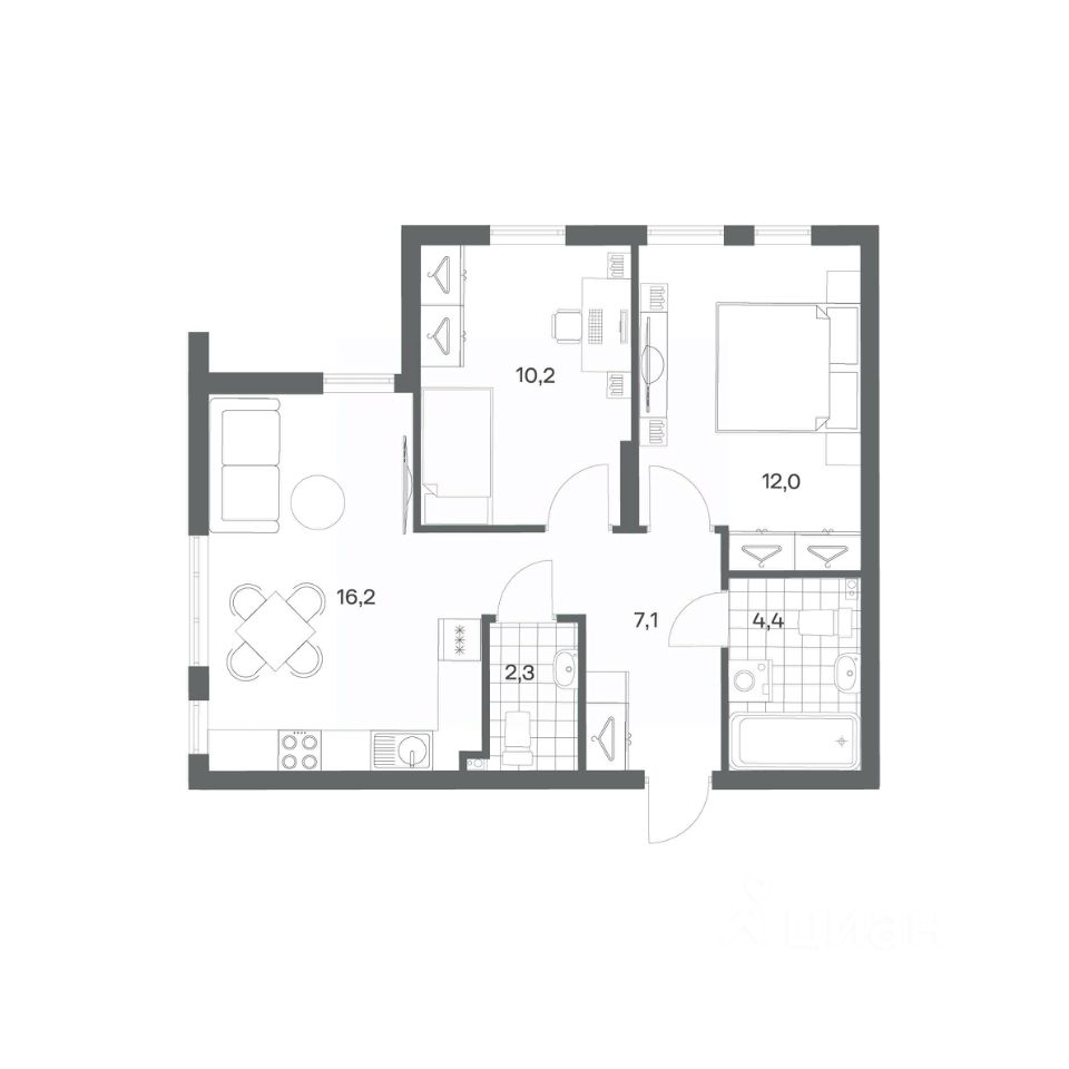 Продается квартира площадью 52.2 м² на 2 этаже 1 секции в Гагарина 30 от компании ГК ''ТРЕСТ''. Площадь кухни 16.2 м². Жилой комплекс комфорт-класса ''Гагарина 30'' расположен в Ленинградском районе Калининграда на улице Юрия Гагарина. Жилой комплекс включает в себя три корпуса высотой 9-18 этажей. Срок сдачи намечен на 1 квартал 2028 года.