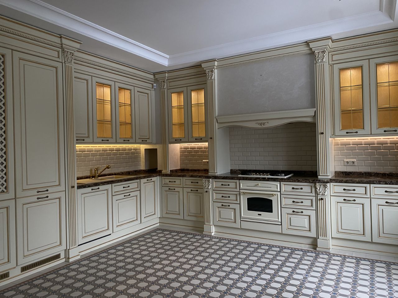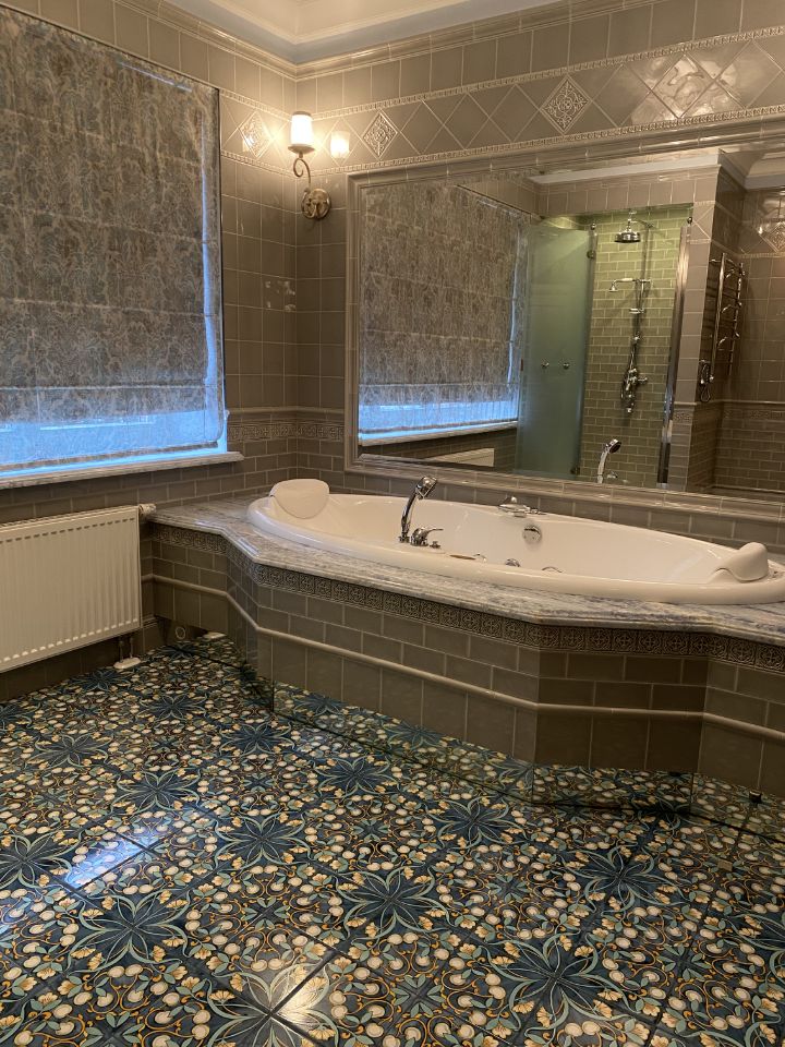 Талантливый дизайнер и вкус хозяйки сделали внутреннее убранство дома безупречным. Кухня Rossi, ванна Jacuzzi, текстиль тоже заказывался из Европы.