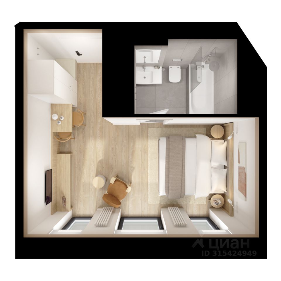 Продаются апартаменты-студия площадью 21,64 кв.м на 3 этаже 15 этажного дома (Вольта, Секция 1) проекта ПИК Вольта.